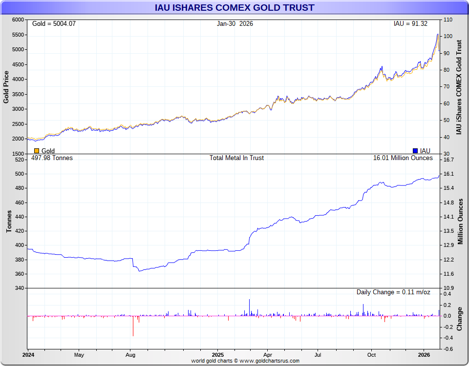 GLD Gold Shares - GLDM Gold MiniShares - IAU Gold Trust - SLV Silver Trust - EFT Total Values