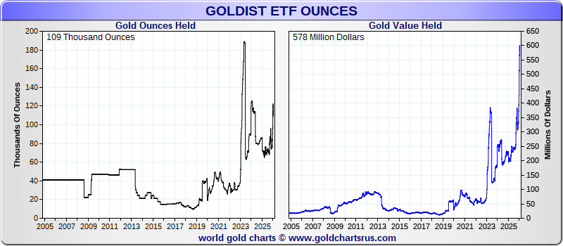 | GOLDIST | 108,674 oz | $ 577,971,802 | -4,059 oz | 18,321 oz | 20.28 % | ||||||