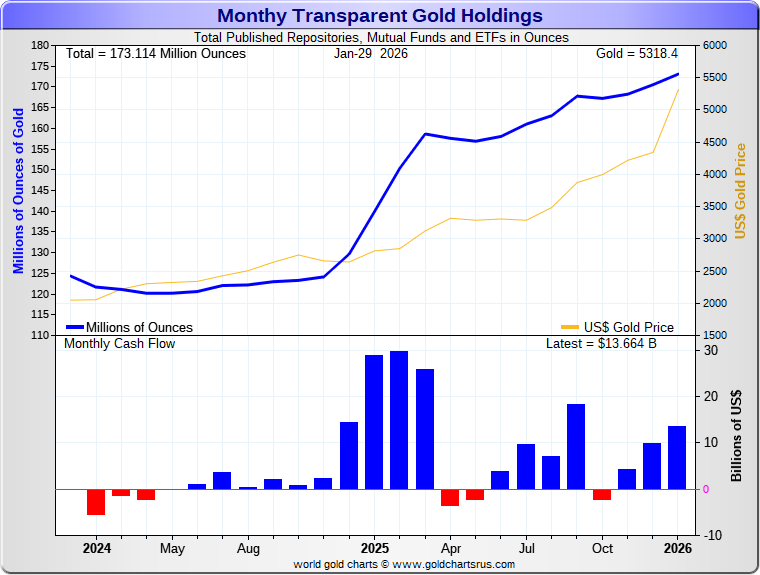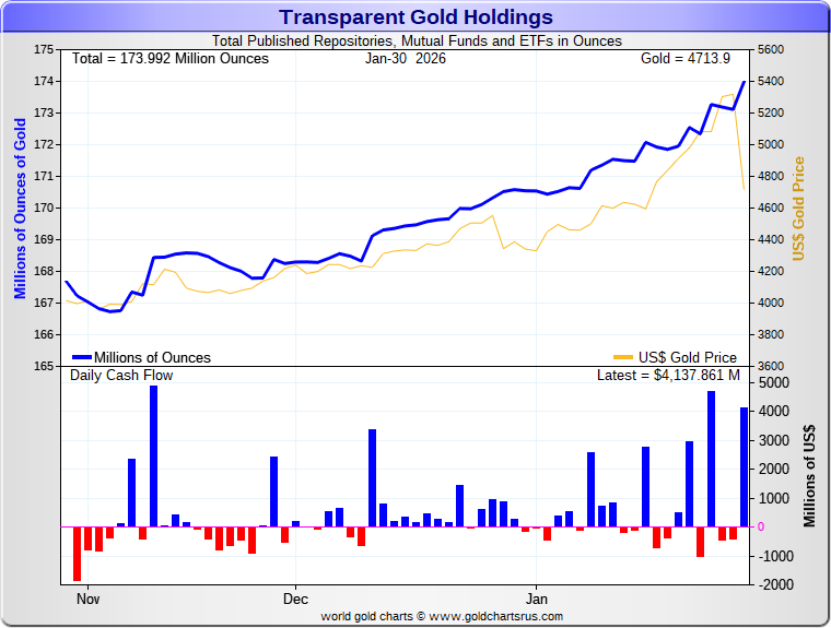 Holdings totaled from Repositories, Mutual Funds, ETFs and electronic Precious Metal sources across the globe