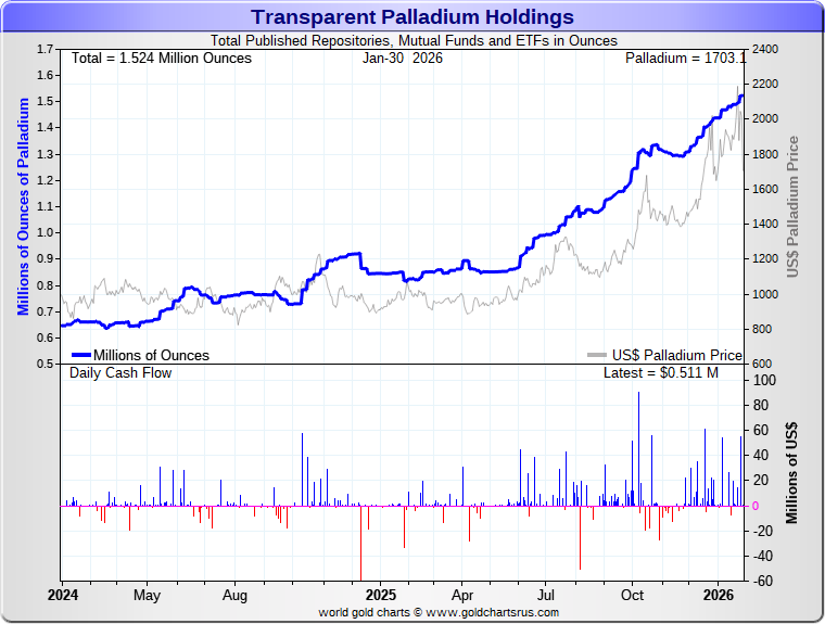 Holdings totaled from Repositories, Mutual Funds, ETFs and electronic Precious Metal sources across the globe |