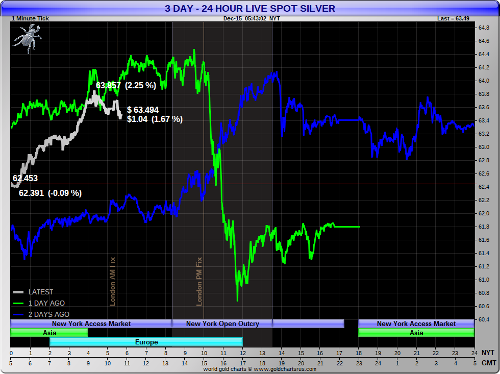 LIVE SPOT SILVER the data for this chart comes from a continuous datafeed which only stops for weekends it is therefore a continuous trading plot that runs 24 hours a day around the globe |
