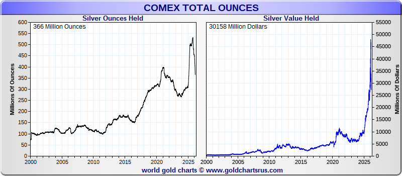 | COMEX | 88,191,059 oz | $ 7,261,651,798 | 0 oz | -26,071,716 oz | -22.82 % | ||||||