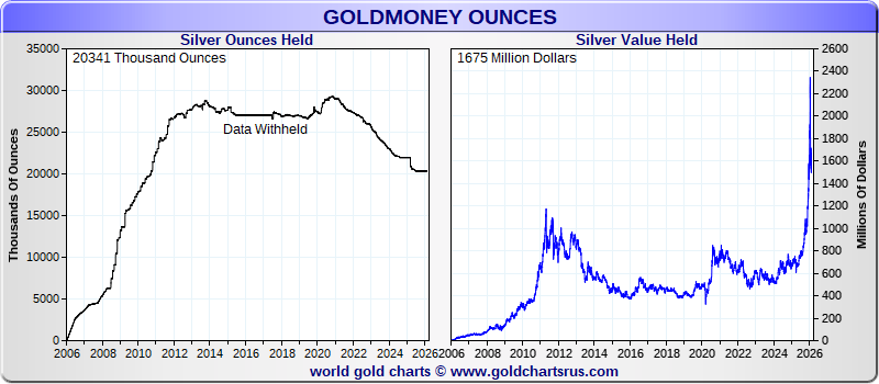 | GoldMoney | 20,340,521 oz | $ 1,674,838,499 | 0 oz | 0 oz | 0.00 % | ||||||
