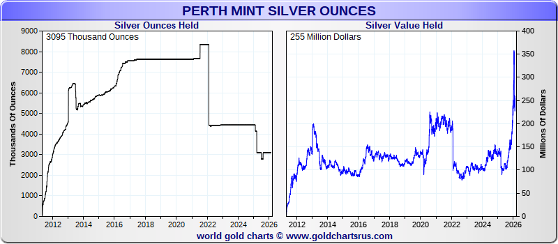 | Perth Mint | 3,094,972 oz | $ 254,839,994 | 0 oz | 0 oz | 0.00 % | ||||||