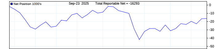 The top chart is fixed with the lower 3 panes available to show the various dataseries provided by the CFTC.
