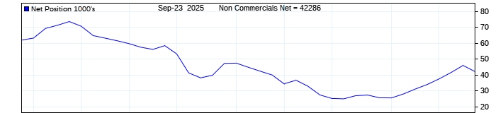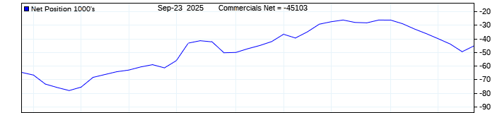 The top chart is fixed with the lower 3 panes available to show the various dataseries provided by the CFTC.