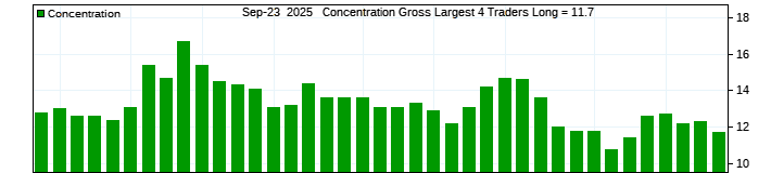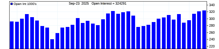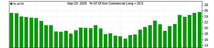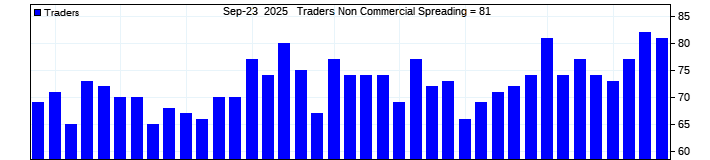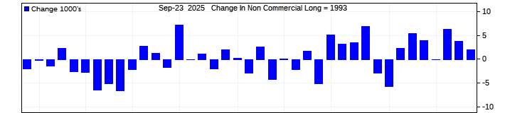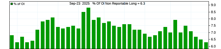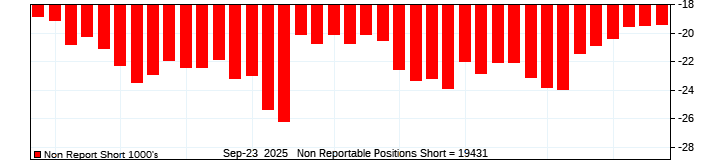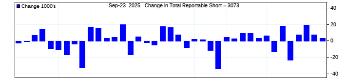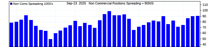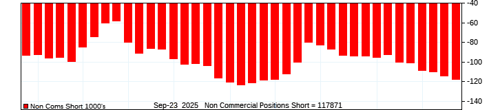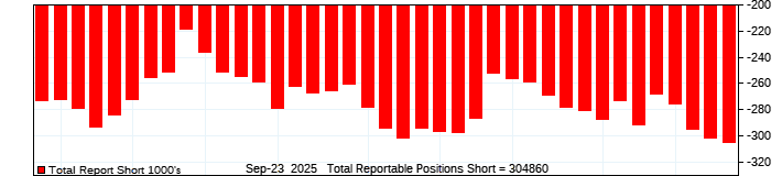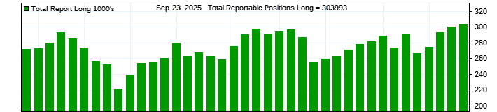 The top chart is fixed with the lower 3 panes available to show the various dataseries provided by the CFTC.