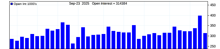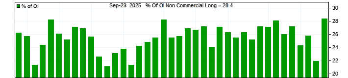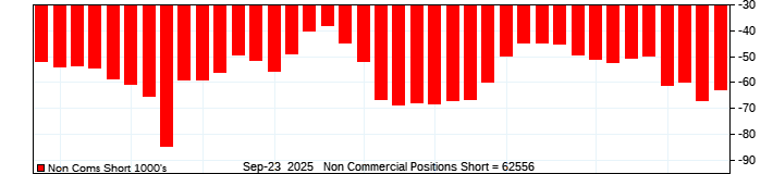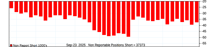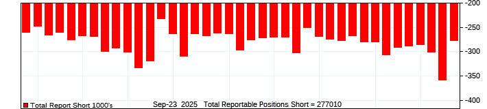 The top chart is fixed with the lower 3 panes available to show the various dataseries provided by the CFTC.