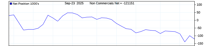 The top chart is fixed with the lower 3 panes available to show the various dataseries provided by the CFTC.