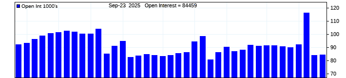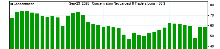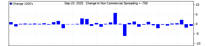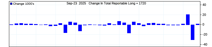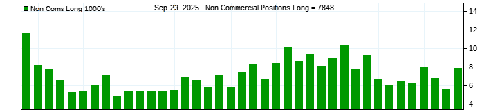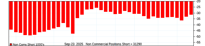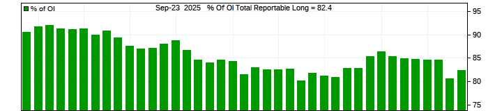 The top chart is fixed with the lower 3 panes available to show the various dataseries provided by the CFTC.