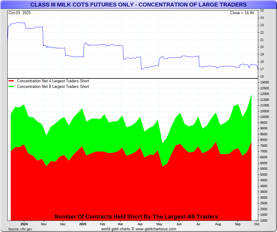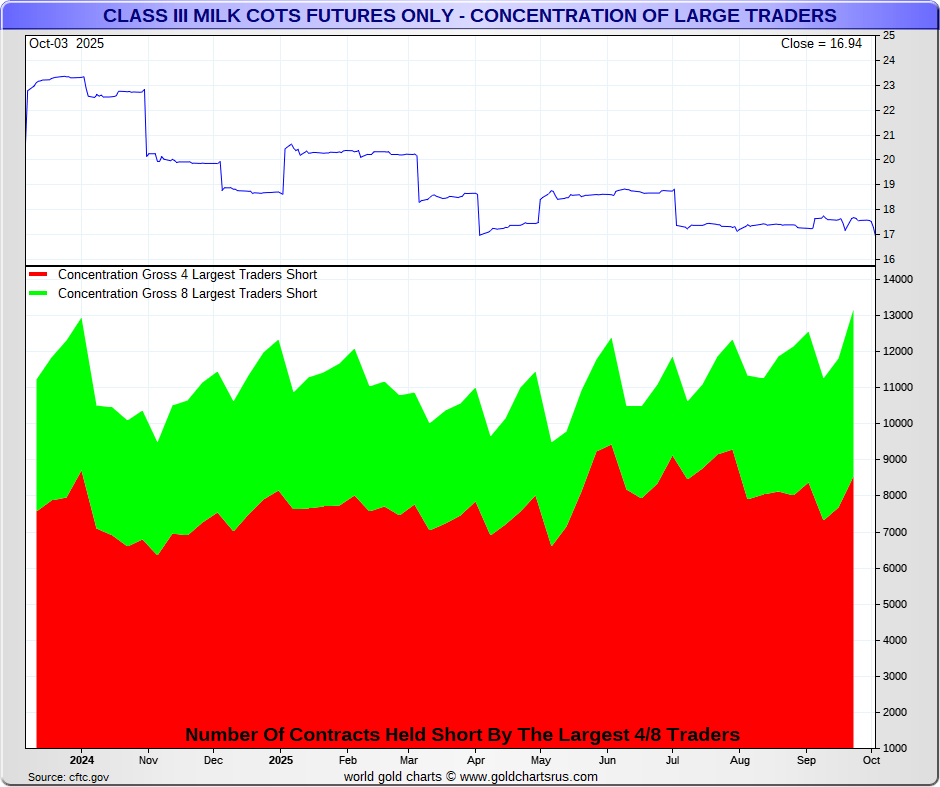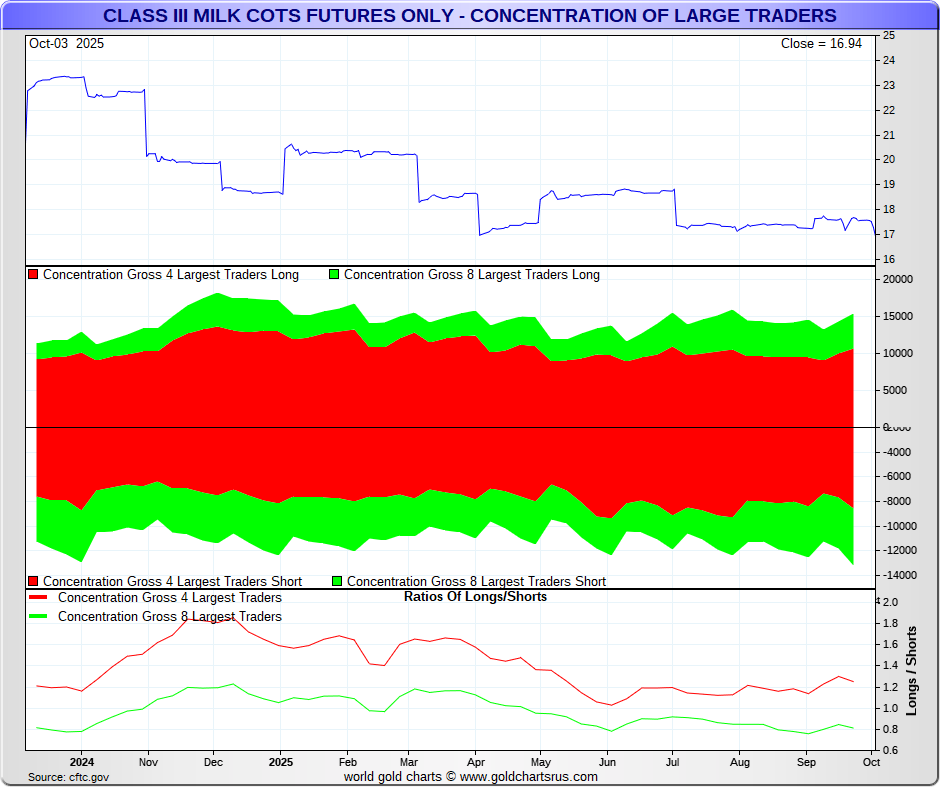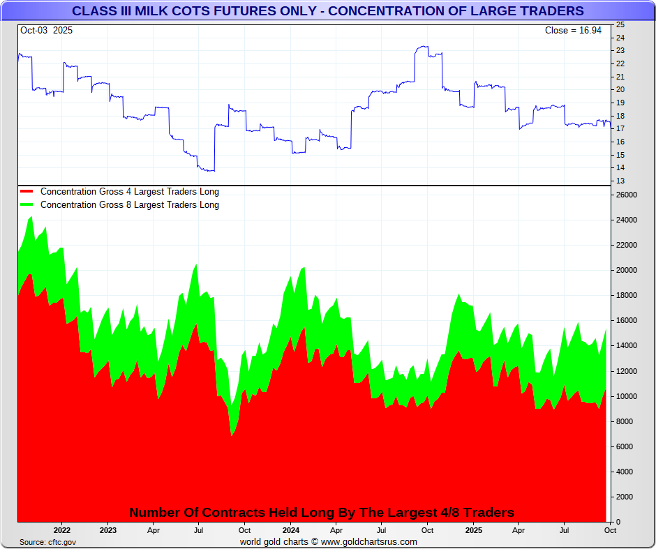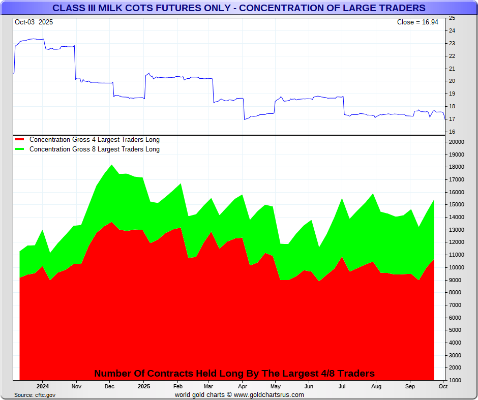 Class III Milk - Futures - COTs - Commitment of Traders - Concentration In The Largest 4 - Largest 8 Traders Positions
