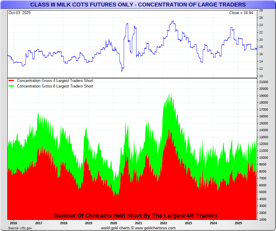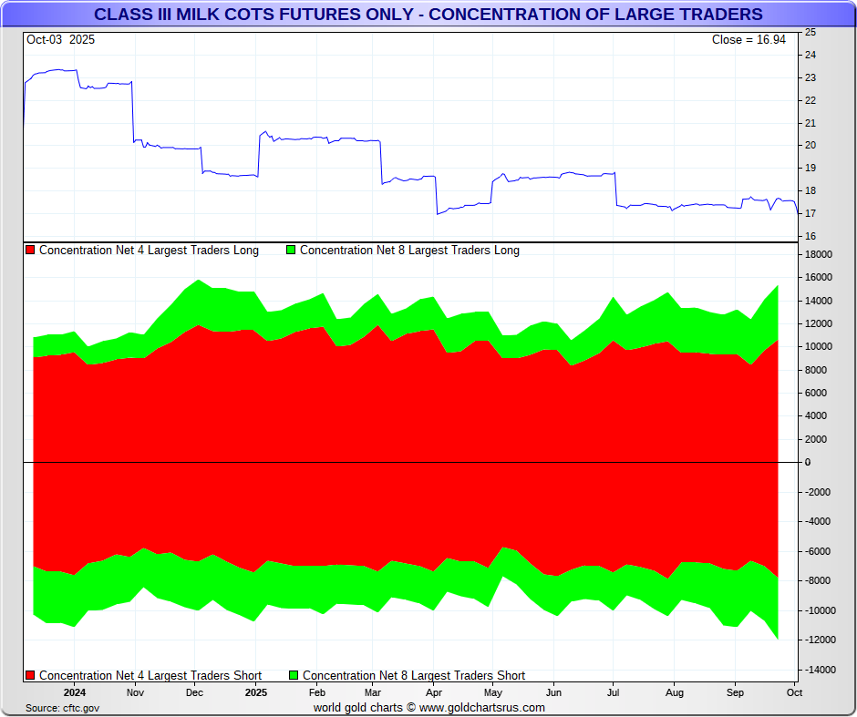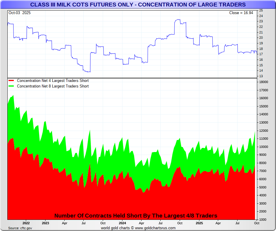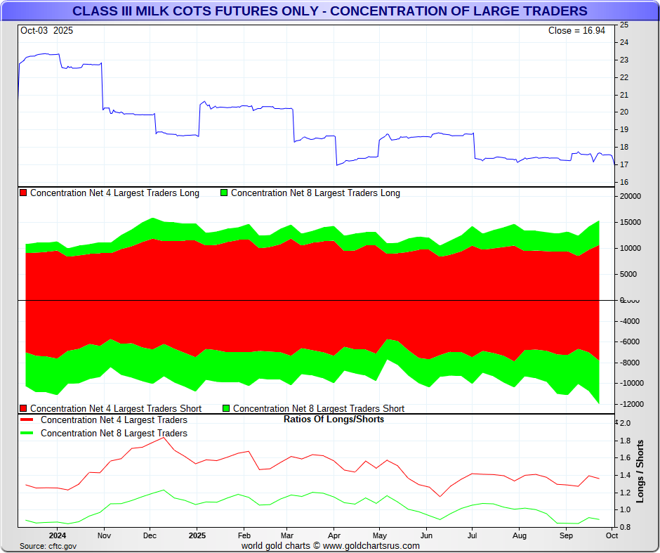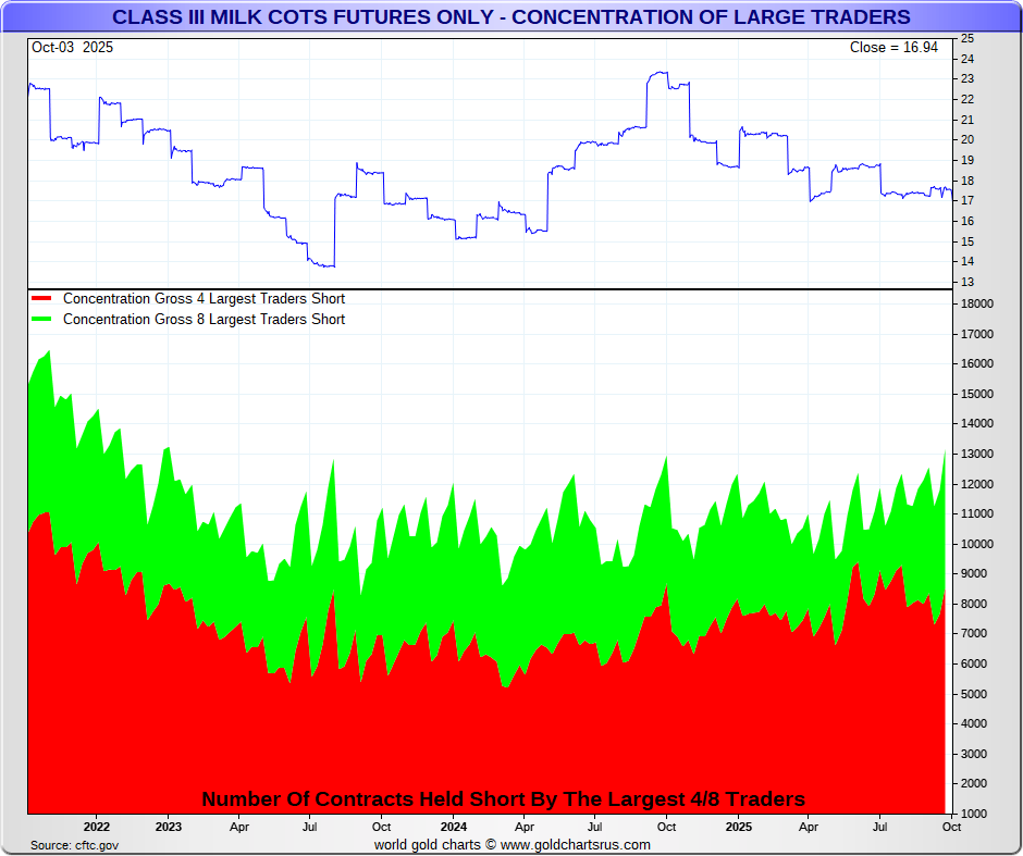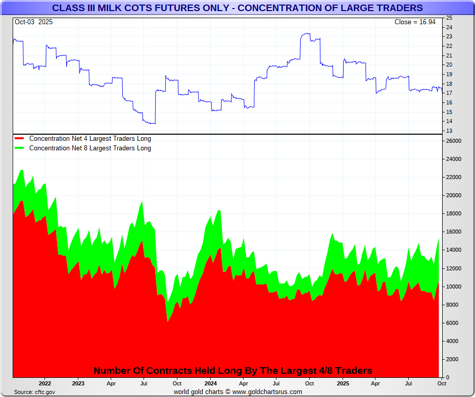 Class III Milk - Futures - COTs - Commitment of Traders - Concentration In The Largest 4 - Largest 8 Traders Positions
