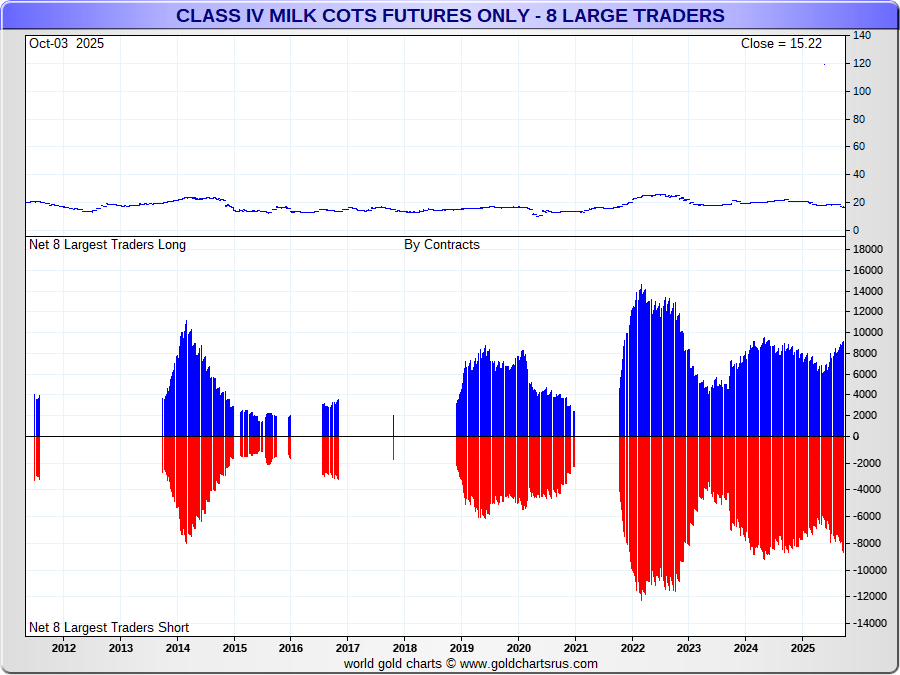 the Net Commercials vs Open Interest/Concentration 8 Largest Traders Short