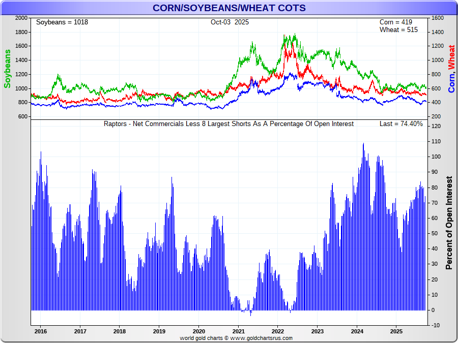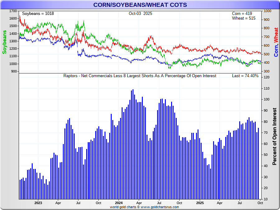 the Net Commercials vs Open Interest/Concentration 8 Largest Traders Short