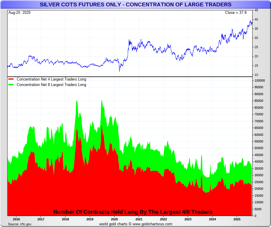 Concentration In The Largest 4 - Largest 8 Traders Positions