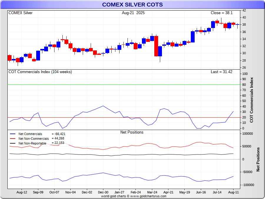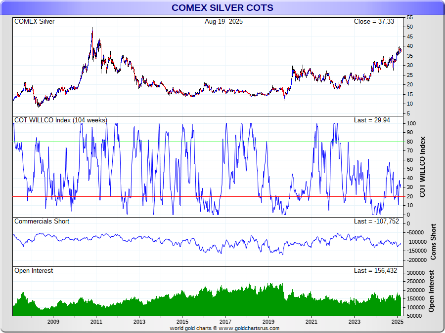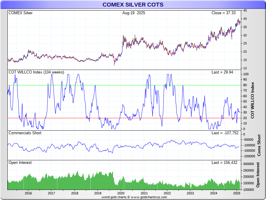 the Commercials Short/Open Interest vs their Historical Range (ie 26 Weeks)