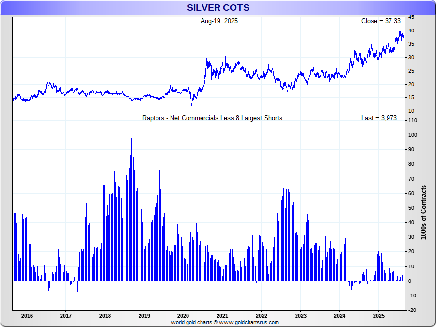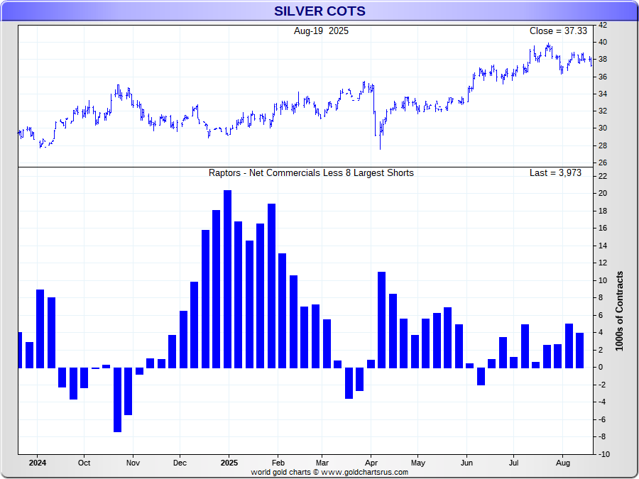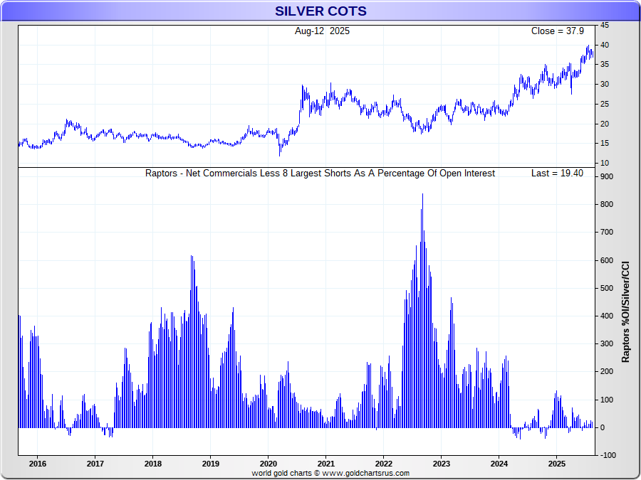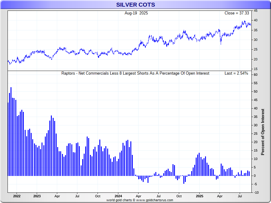 the Net Commercials vs Open Interest/Concentration 8 Largest Traders Short