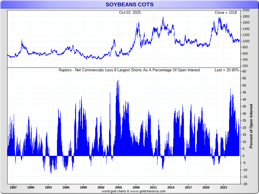 the Net Commercials vs Open Interest/Concentration 8 Largest Traders Short