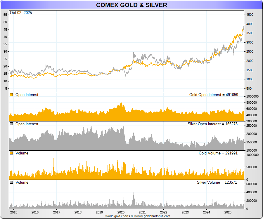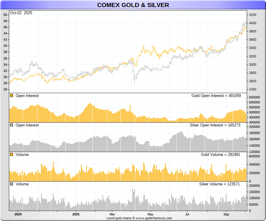 GOLD/SILVER OPEN INTEREST & VOLUMES