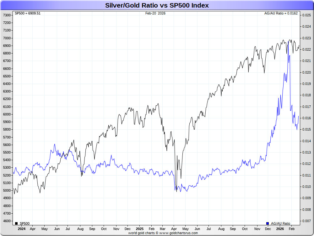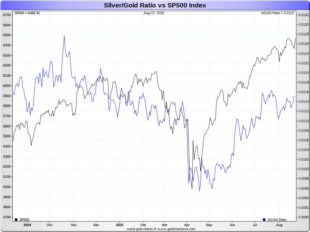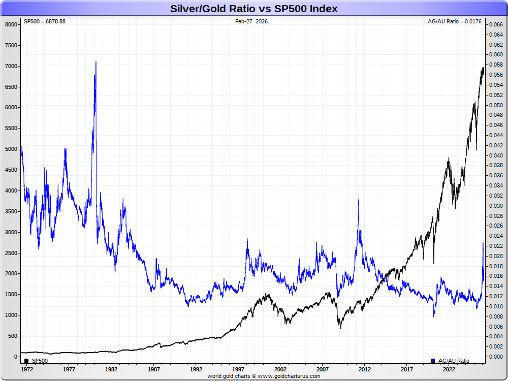 Silver/Gold Ratio vs SP500 Index