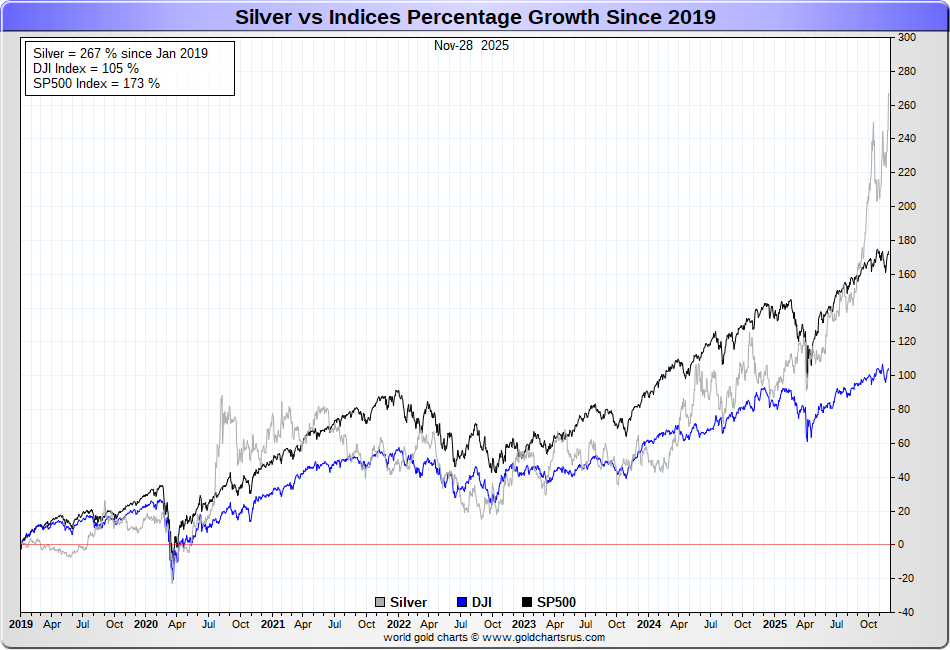 Gold/Silver vs DJIA/SPX - Percentage Moves