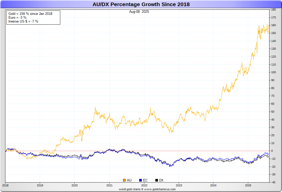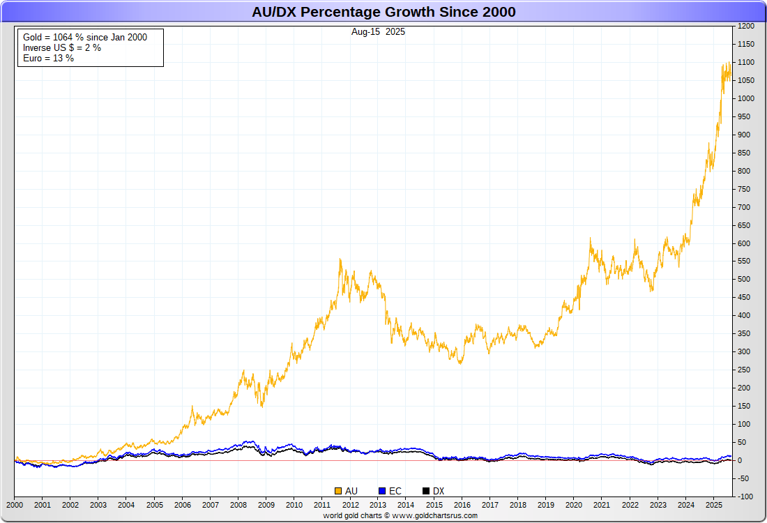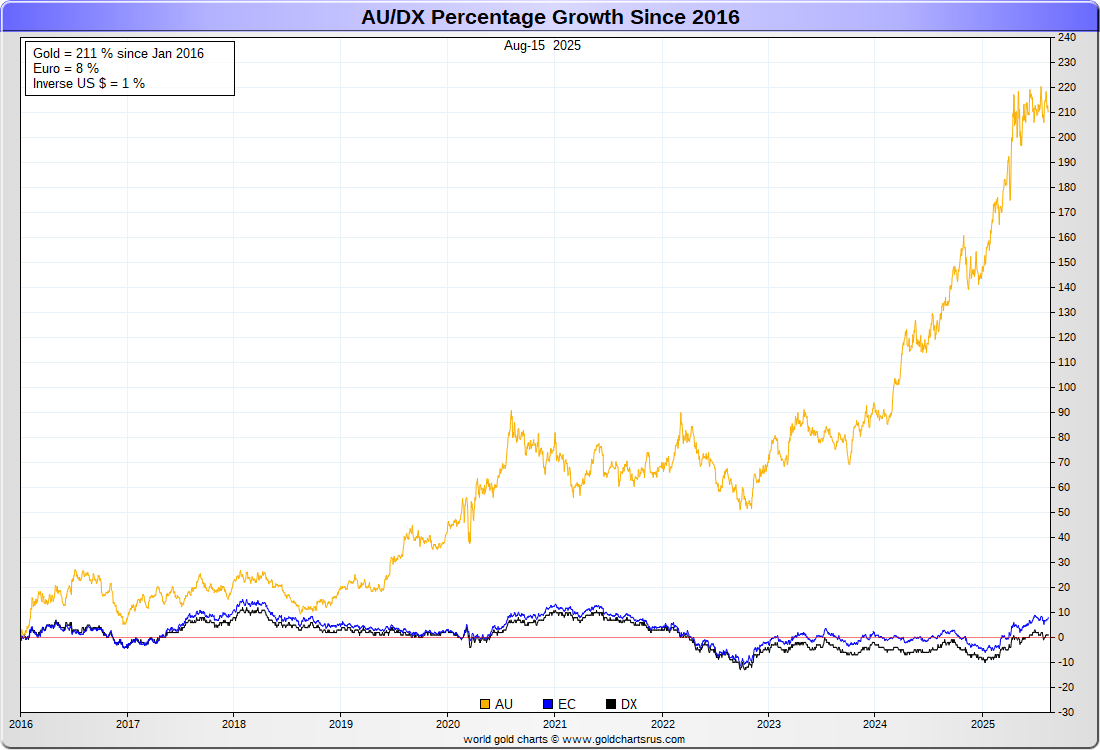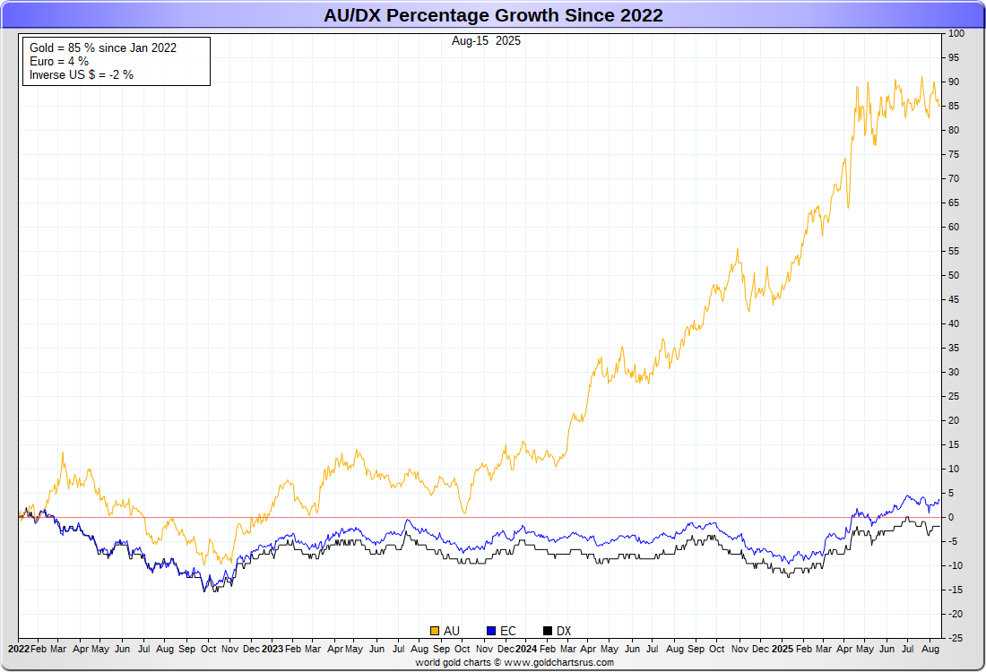 US DOLLAR (inverse) vs EURO vs GOLD :-: REBASED