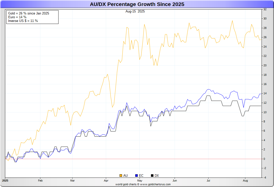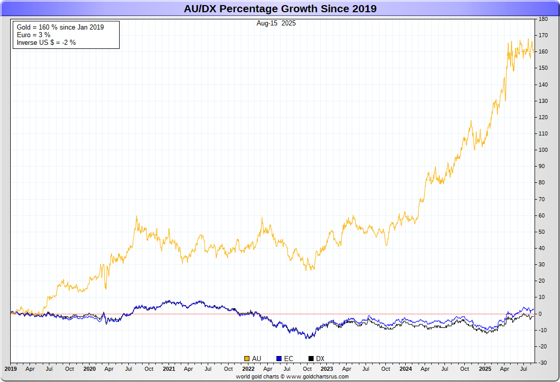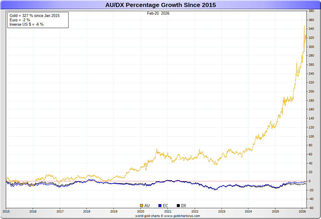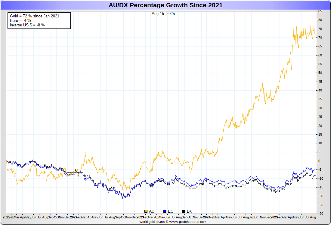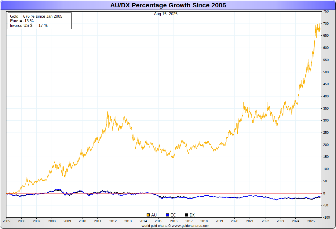US DOLLAR (inverse) vs EURO vs GOLD :-: REBASED
