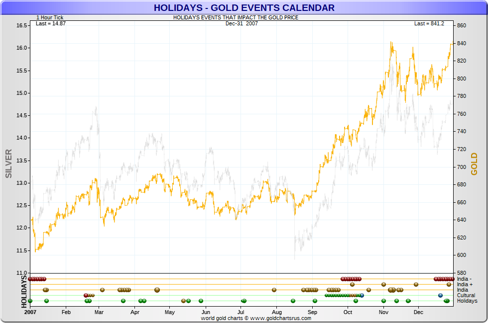 Gold Events Calendar - how holidays impact upon gold