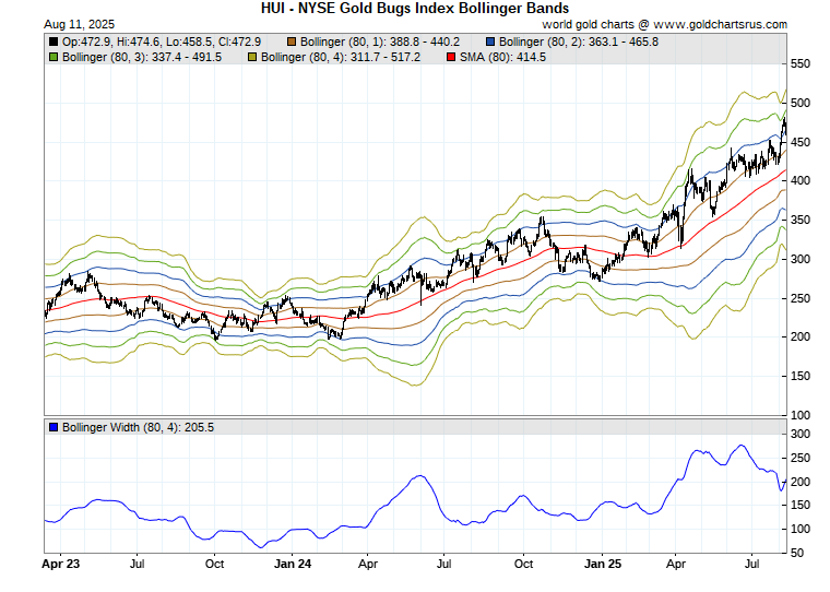 HUI Index Bollinger Band Spreads