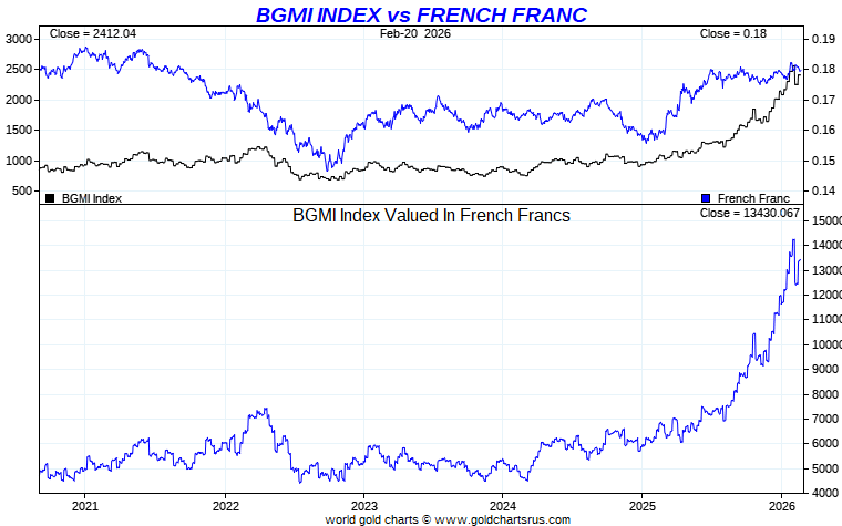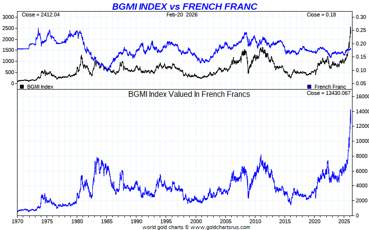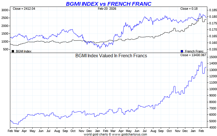 Barron's Gold Mines Index vs Global Currency - French Franc