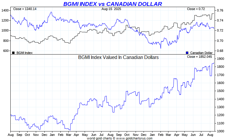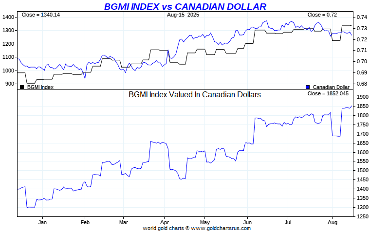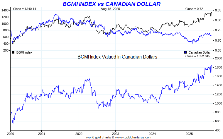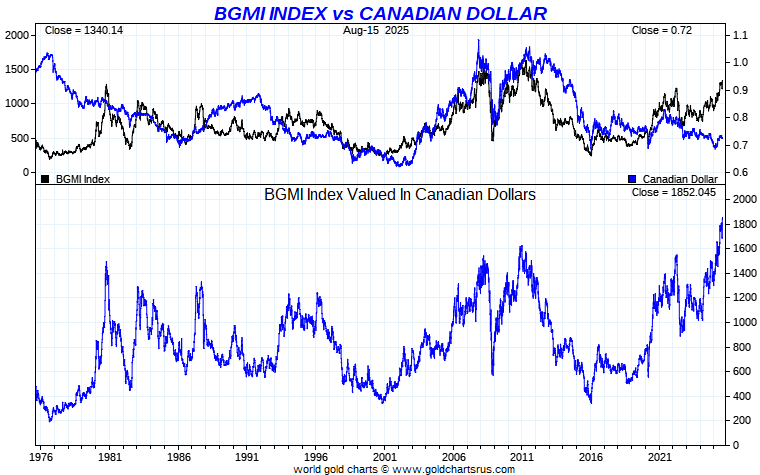 Barron's Gold Mines Index vs Global Currency - Canadian Dollar