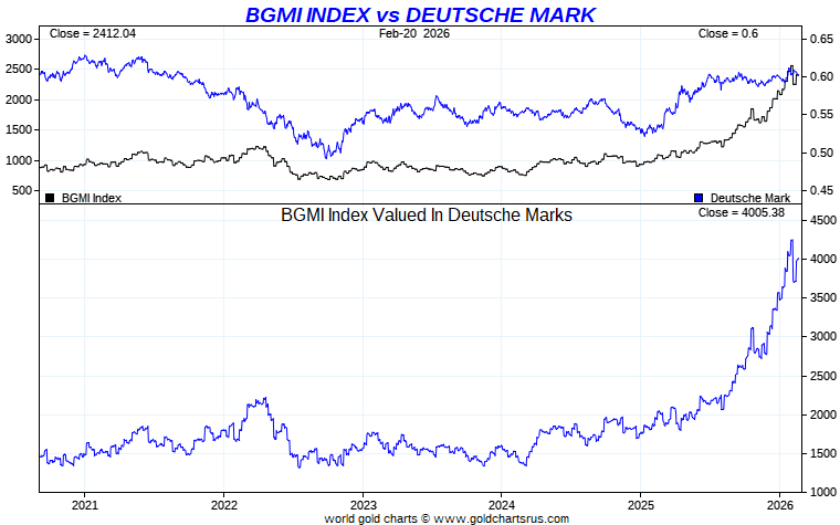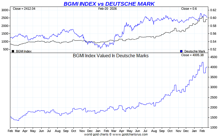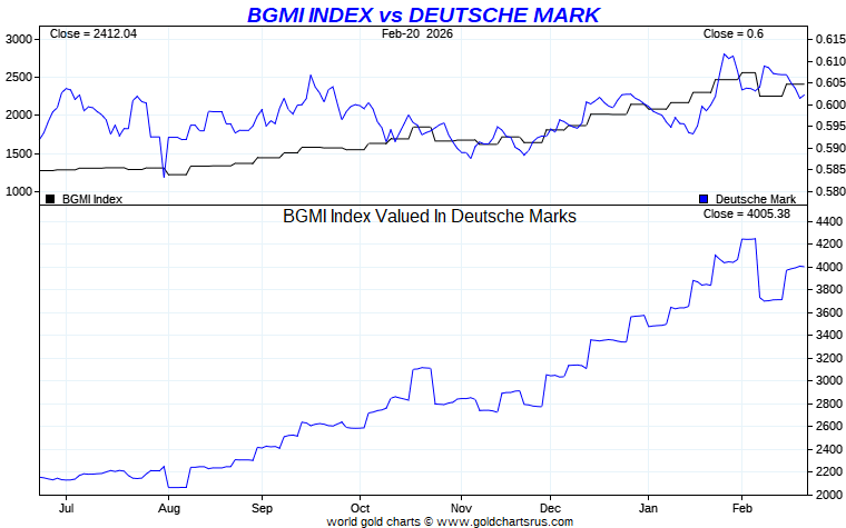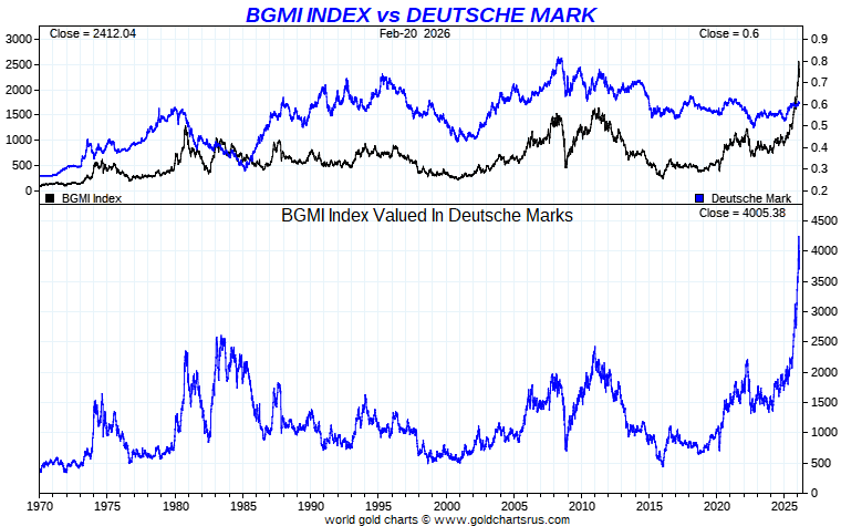 Barron's Gold Mines Index vs Global Currency - German Mark