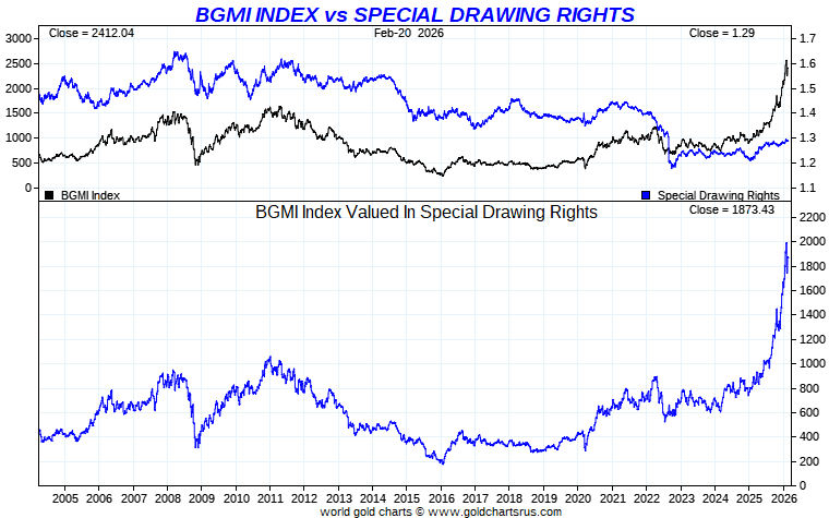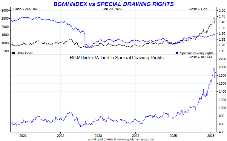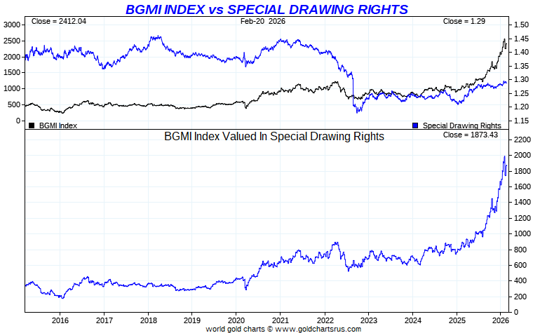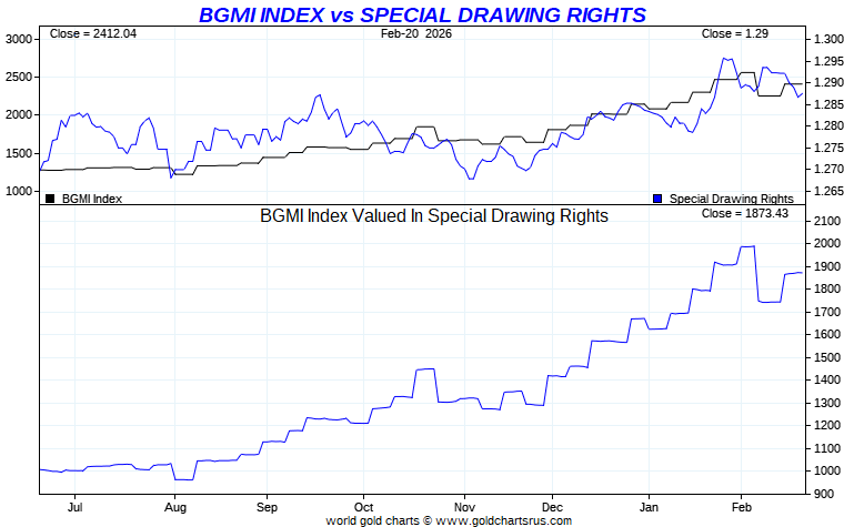Barron's Gold Mines Index vs Global Currency - Special Drawing Rights