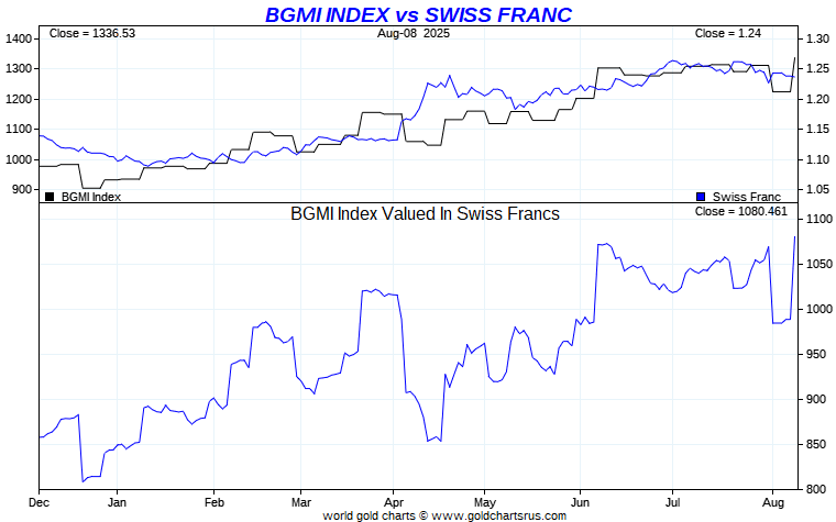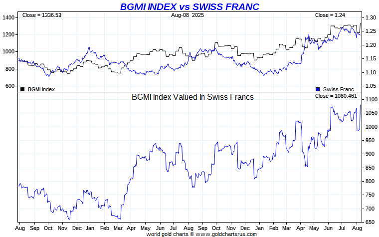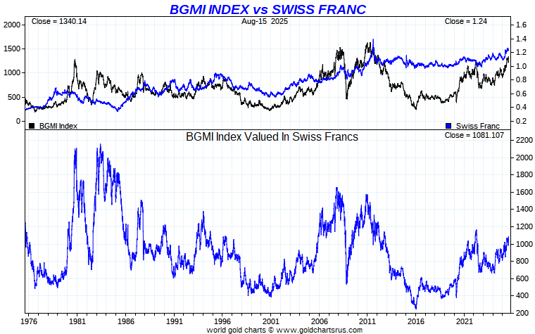 Barron's Gold Mines Index vs Global Currency - Swiss Franc