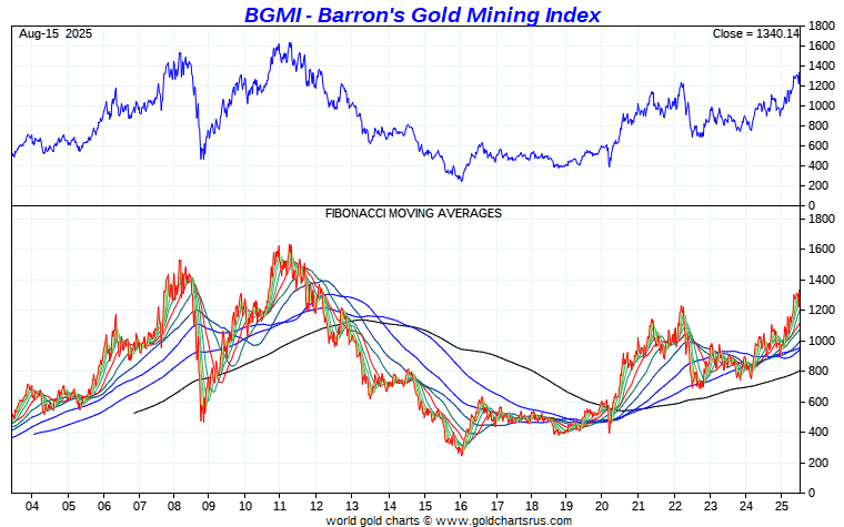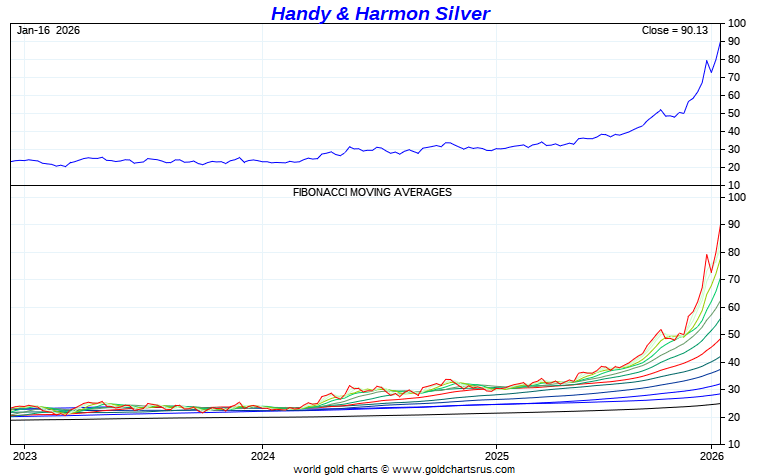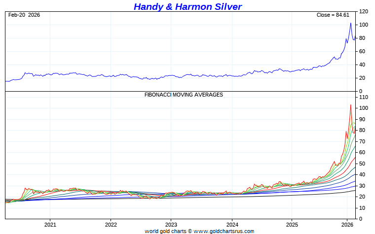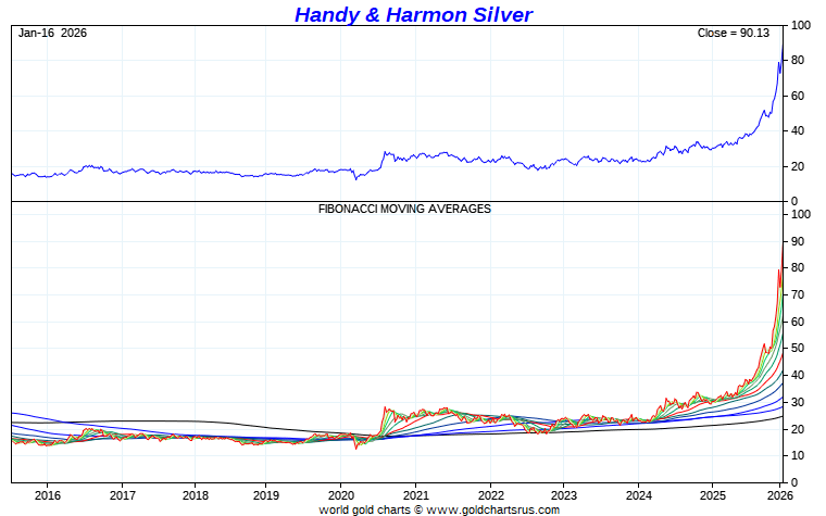 Barron's Gold Mining Index - Handy & Harmon Gold Price - Handy & Harmon Silver Price