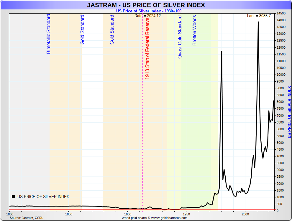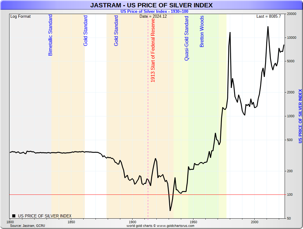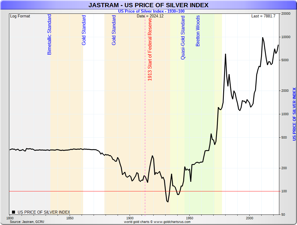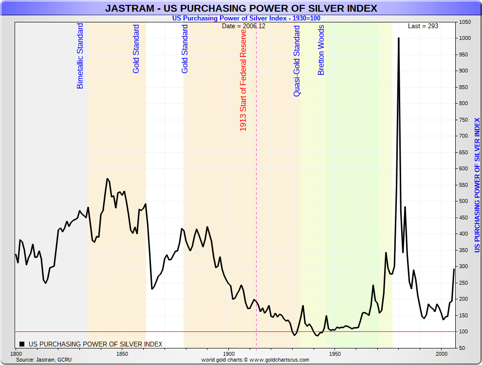 NOTE: Jastram rebased his Indexes to 1930 which is 1 year from silver's all time lows of $0.2575 (February 1931)