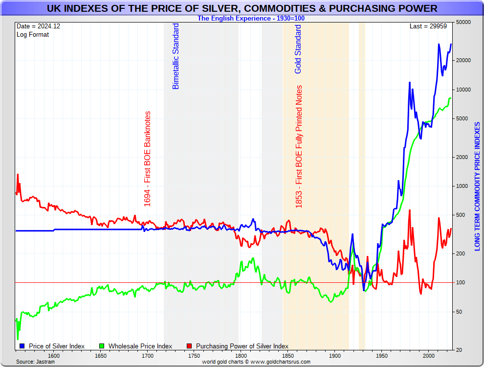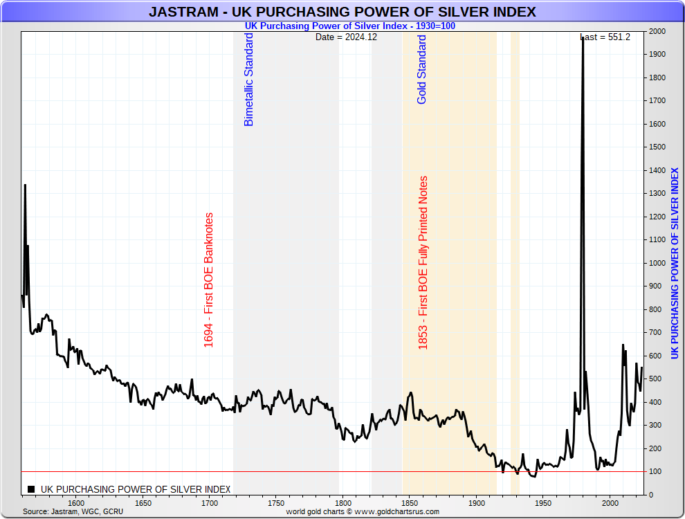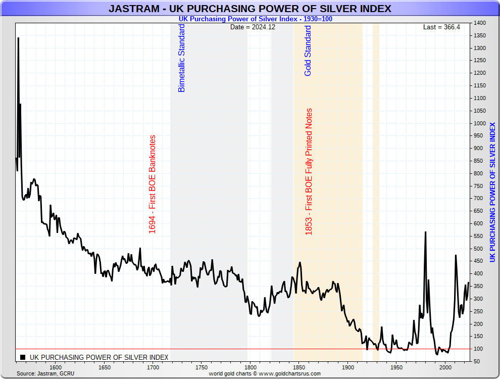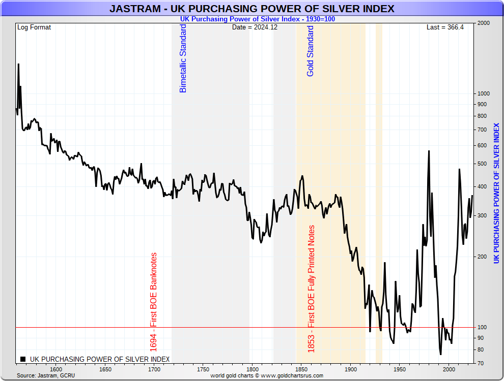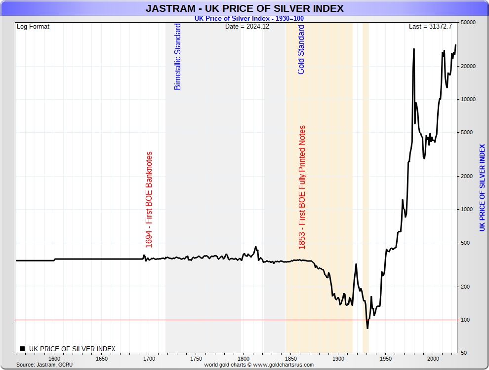 NOTE: Jastram rebased his Indexes to 1930 which is 1 year from silver's all time lows of $0.2575 (February 1931)