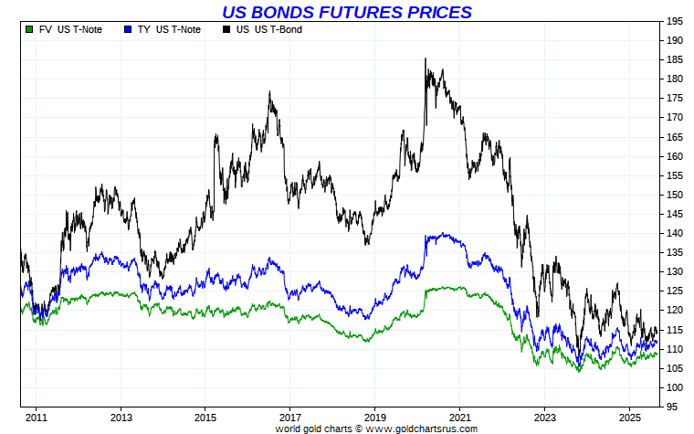 US Treasury Bond/Note Prices - 30/10/5 year Treasuries