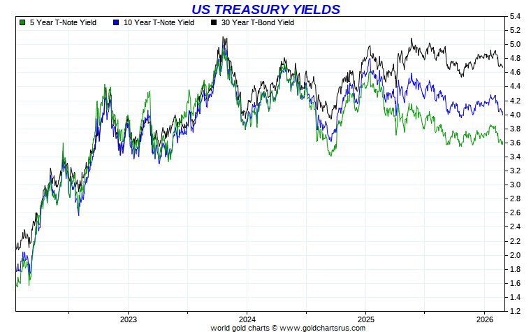 US Treasury Bond/Note Yields - 30/10/5 year Treasuries