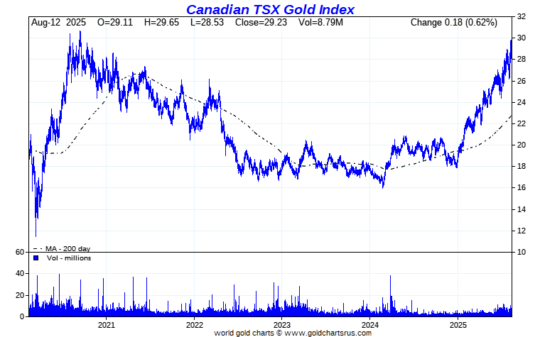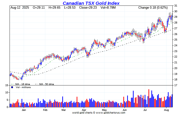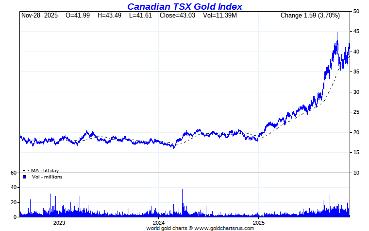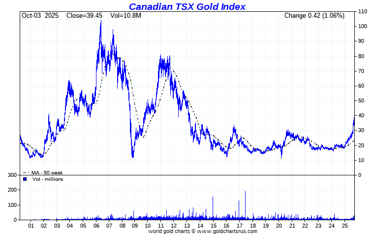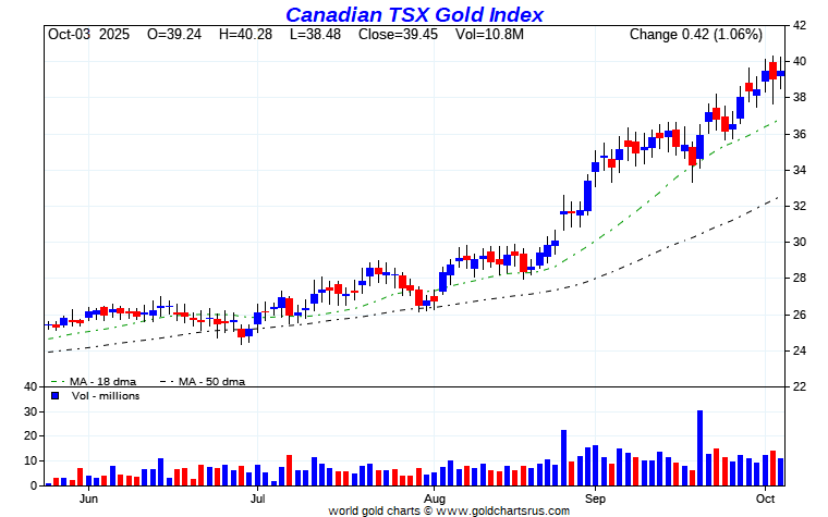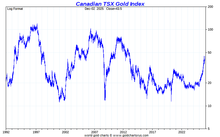 Compiled from the share prices of selected Canadian gold emerging producer stocks.