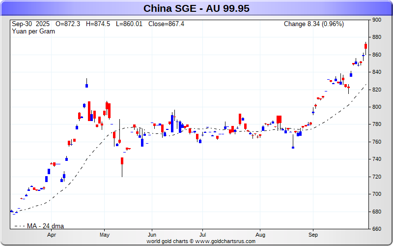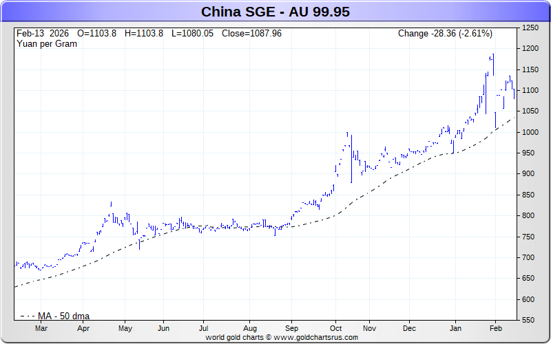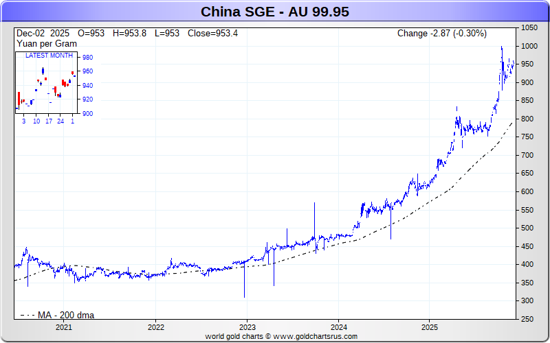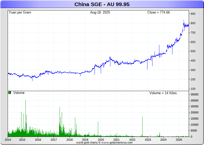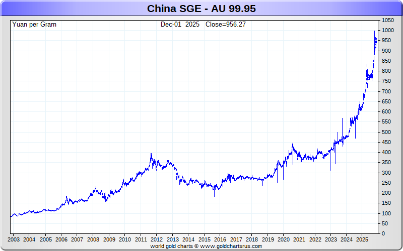 Chinese SGE Gold Futures Charts - Yuan per Gram - Precious Metals