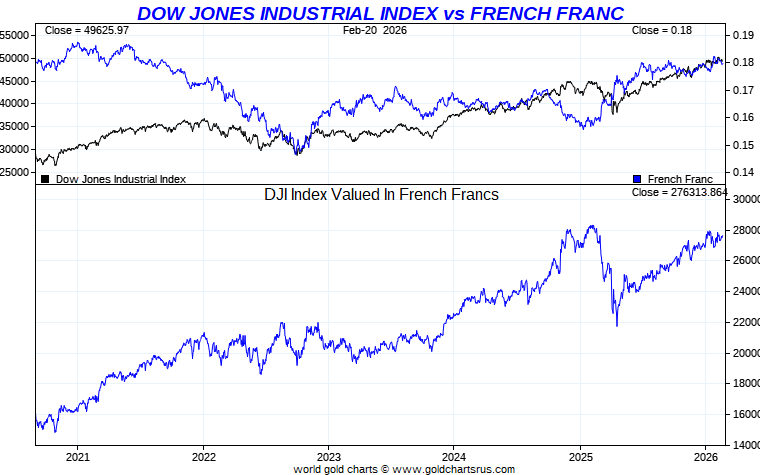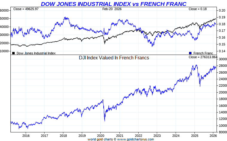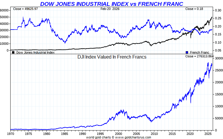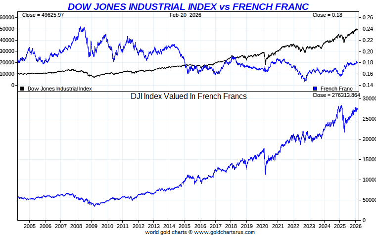 Dow Jones Industrial Index vs Global Currency - French Franc