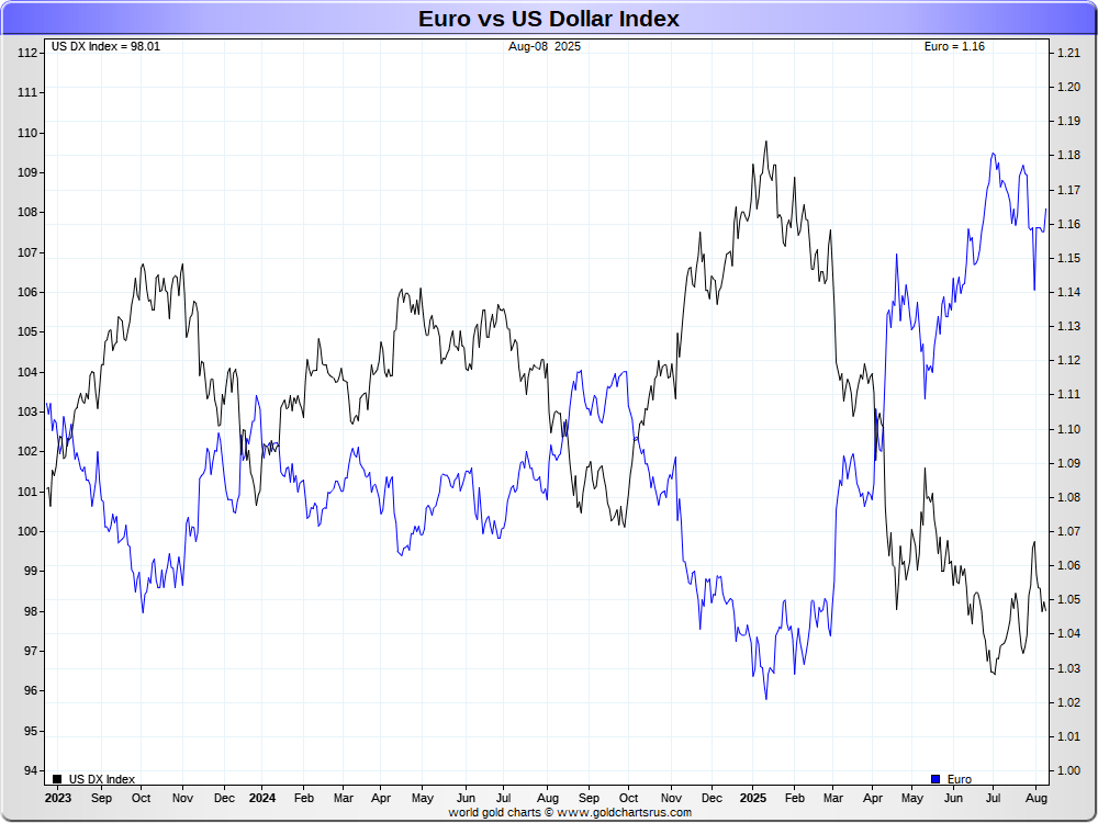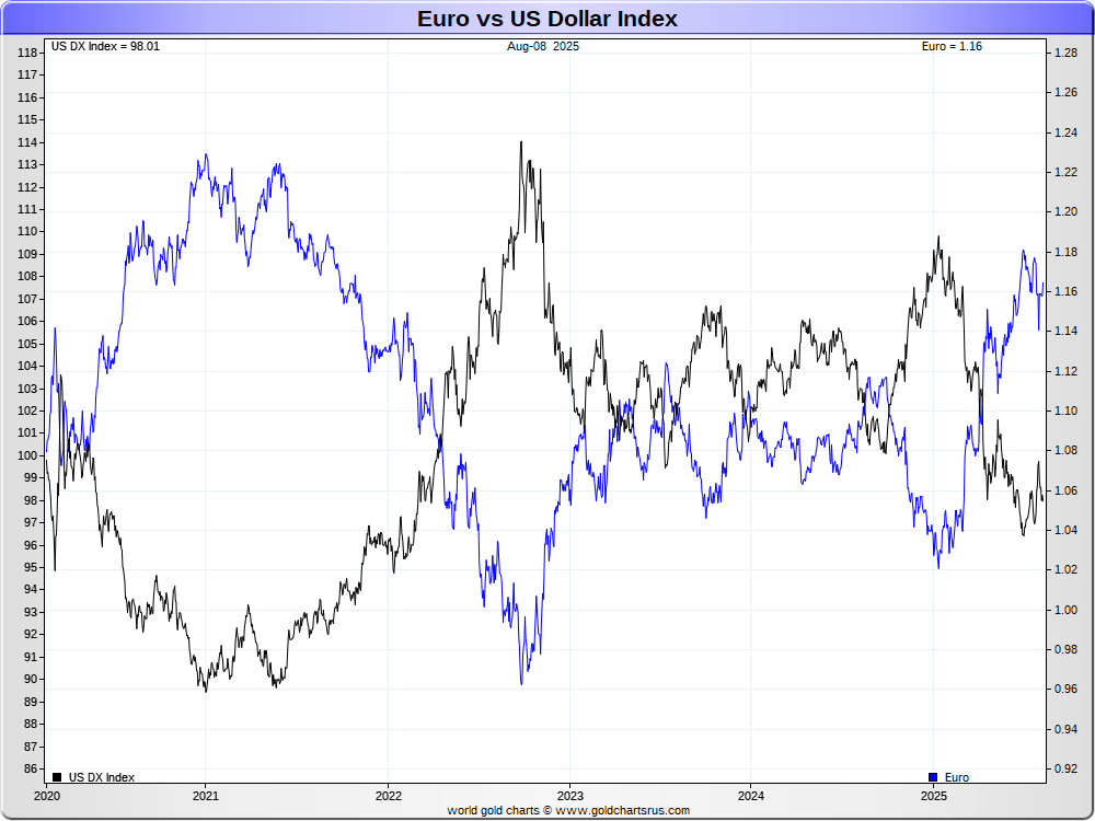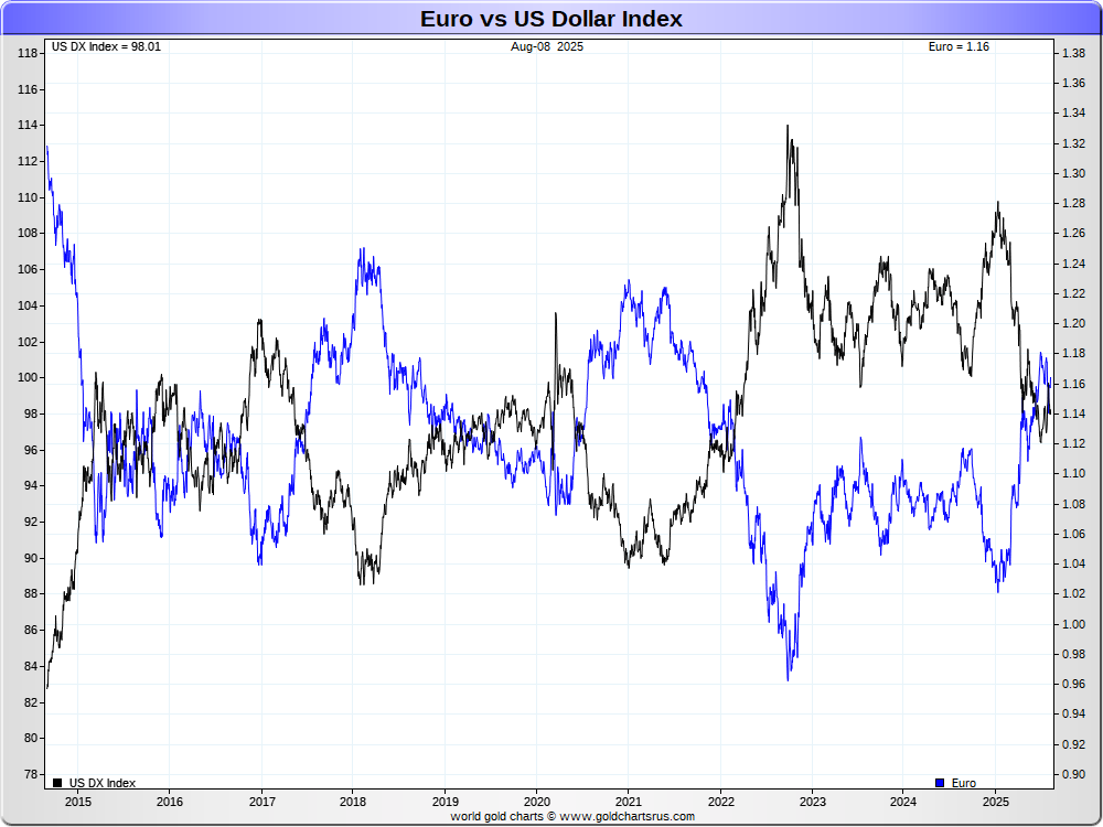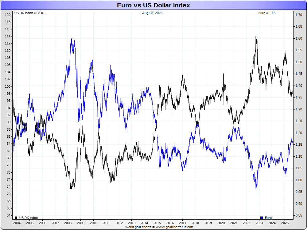 Euro vs US Dollar Index (DX)
