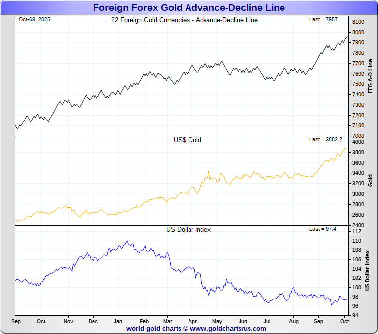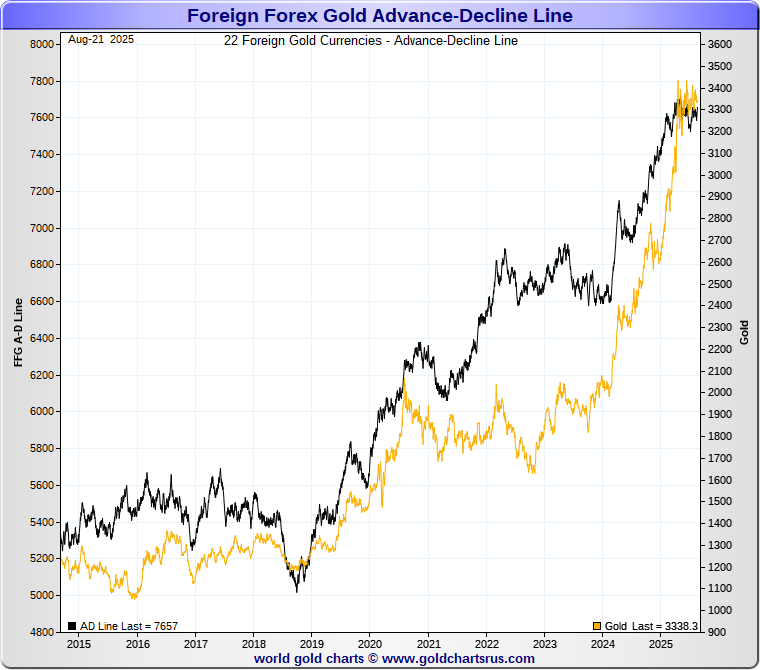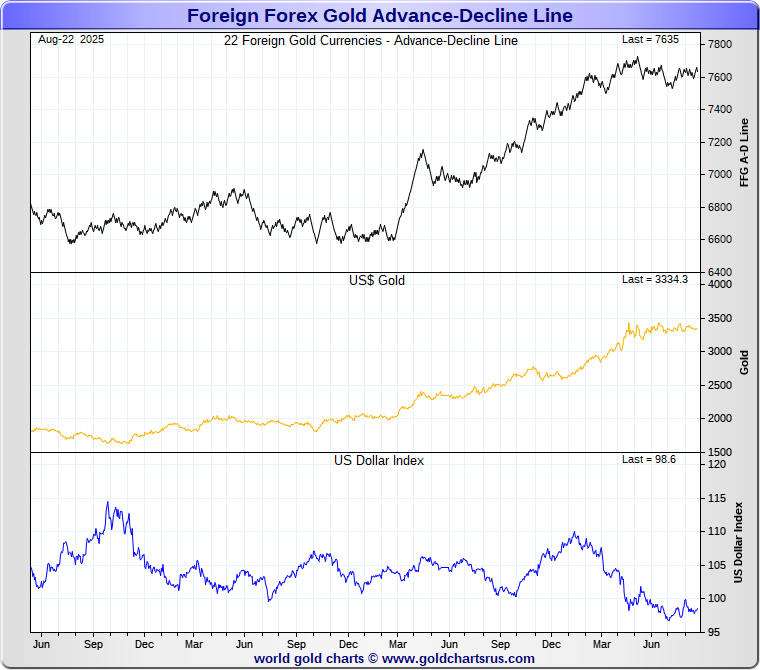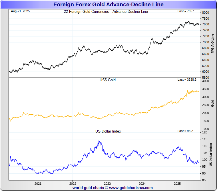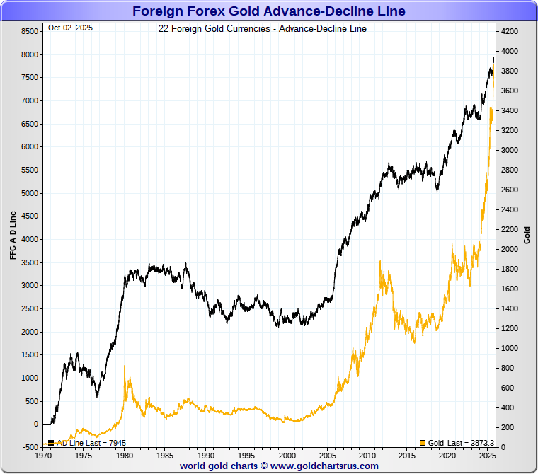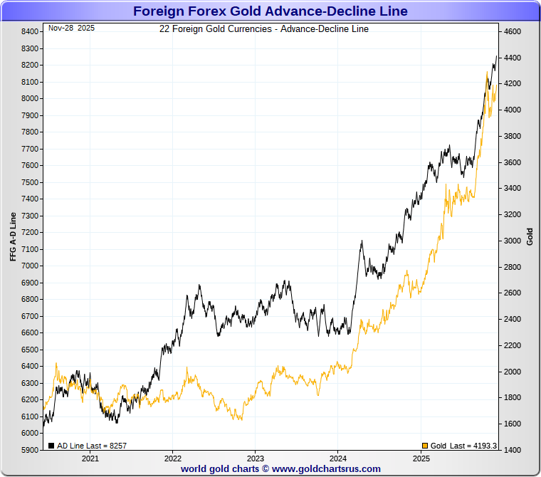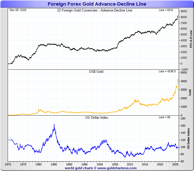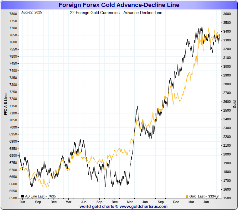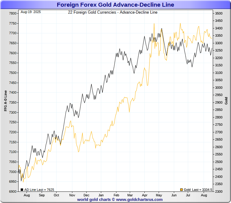 The Gold Forex A-D Line is constructed from the Advance-Decline moves of Foreign Forex Gold Prices.