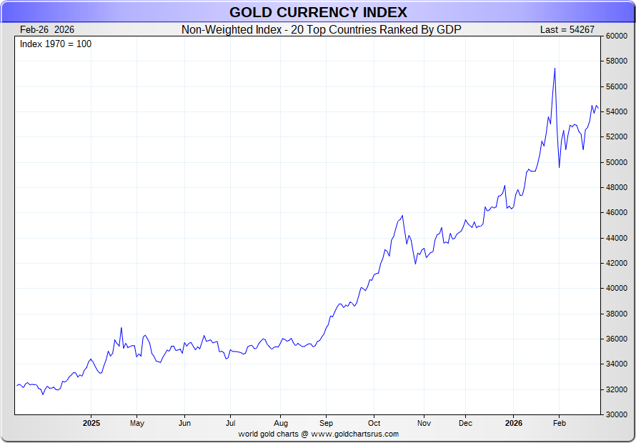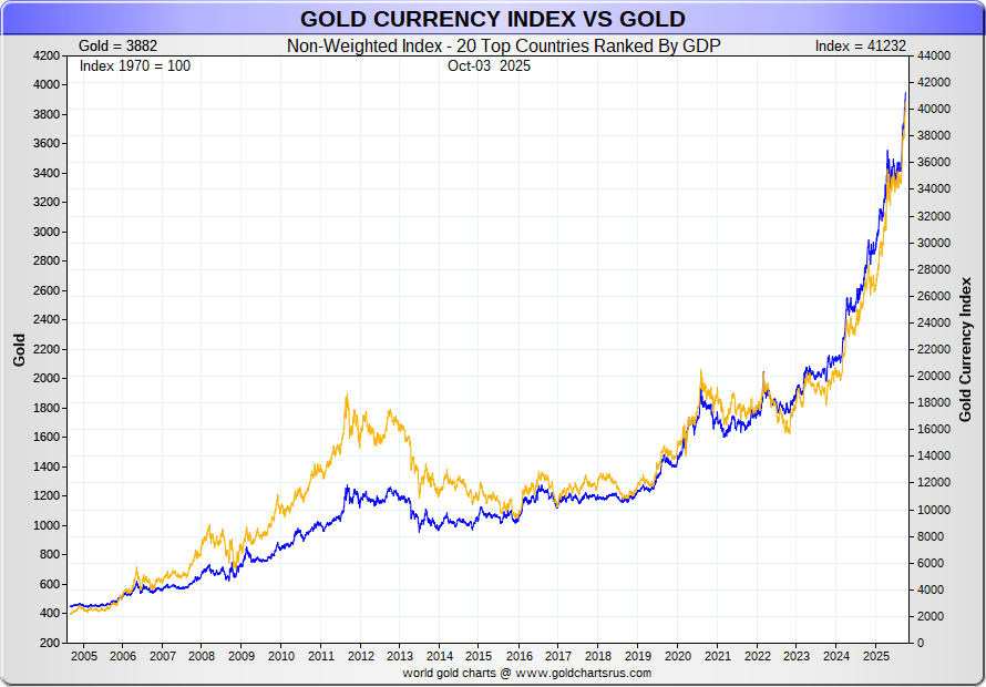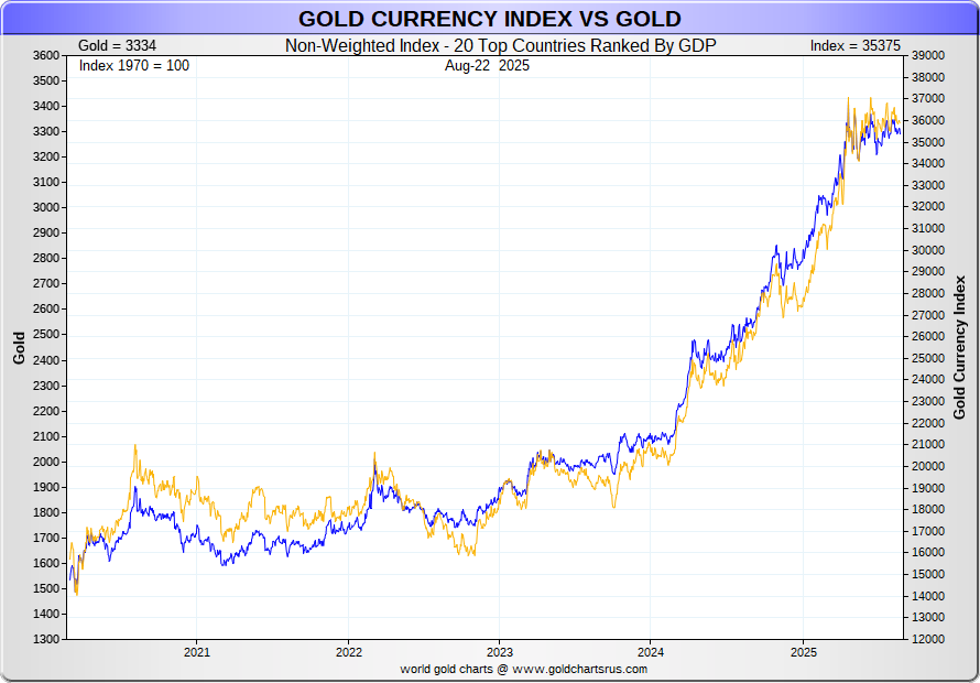 Index compiled from the local gold prices of the Top 20 countries shown here: GDP Ranking