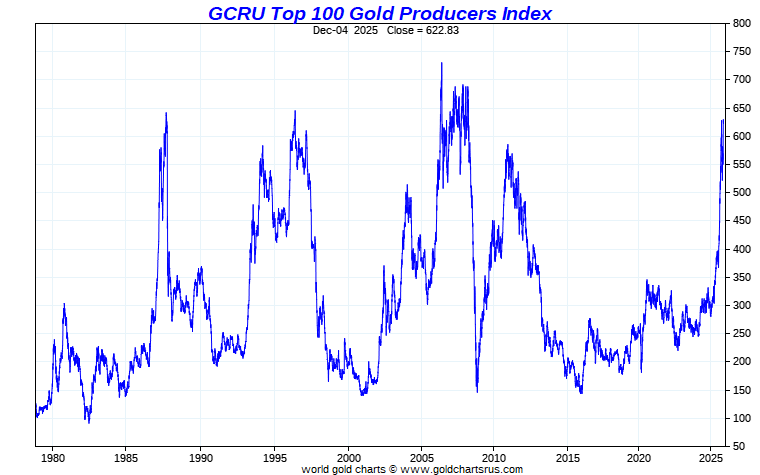 The GCRU100 Index comprises the greater majority of the world's top producers plus a few select stocks.