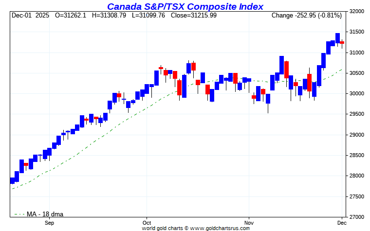 Sharemarket Indices :-: Toronto TSE 300 :-: ^GSPTSE