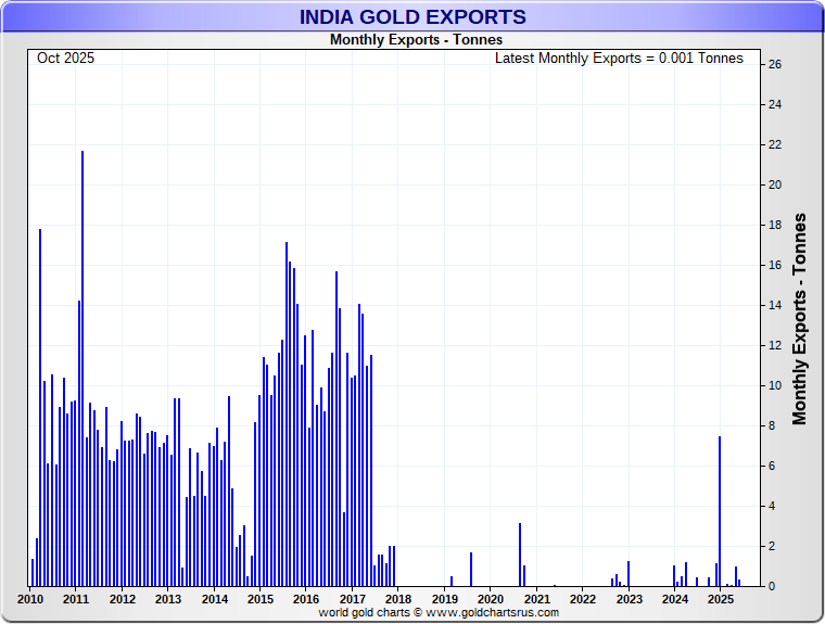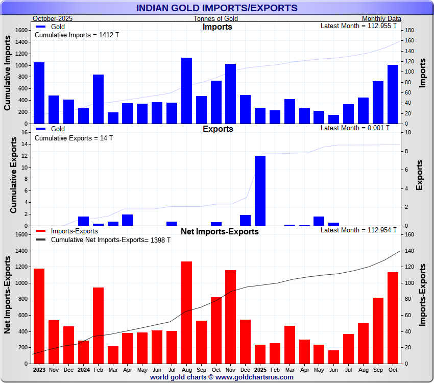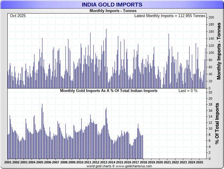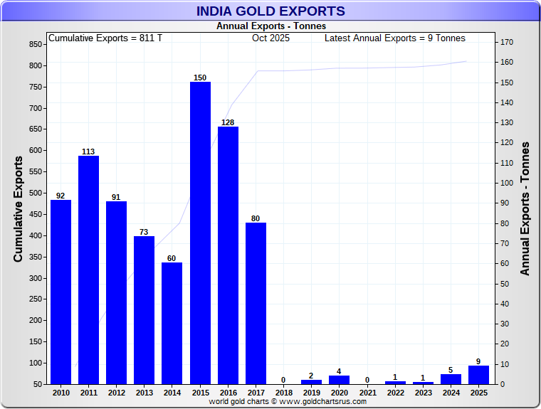Tonnages are derived from INR values divided by the INR gold price. Source: DGCIS |