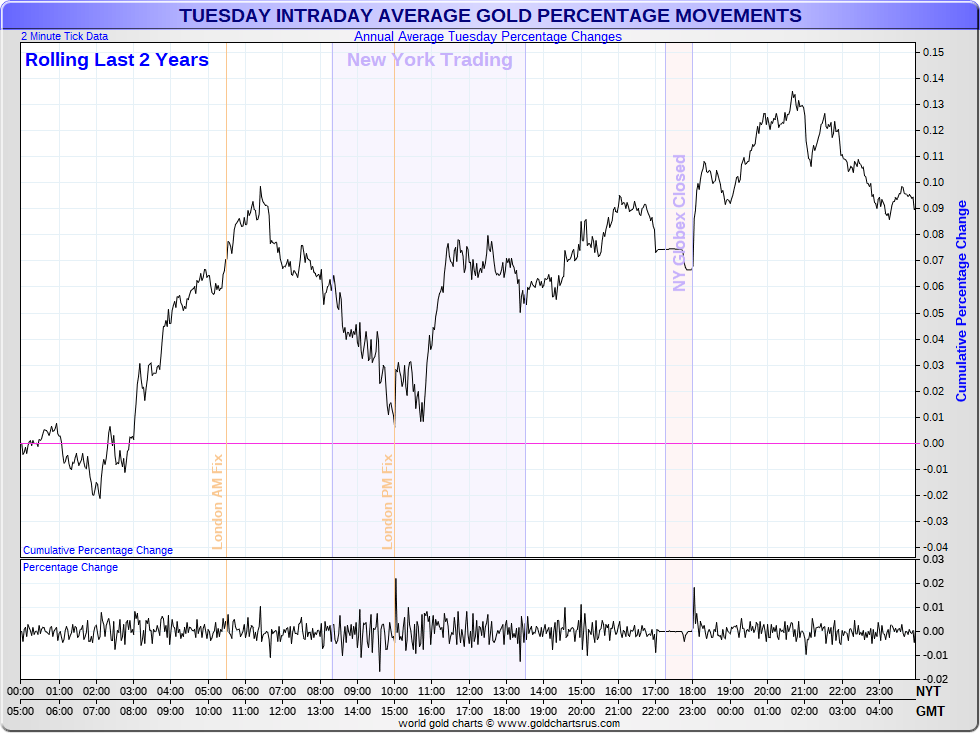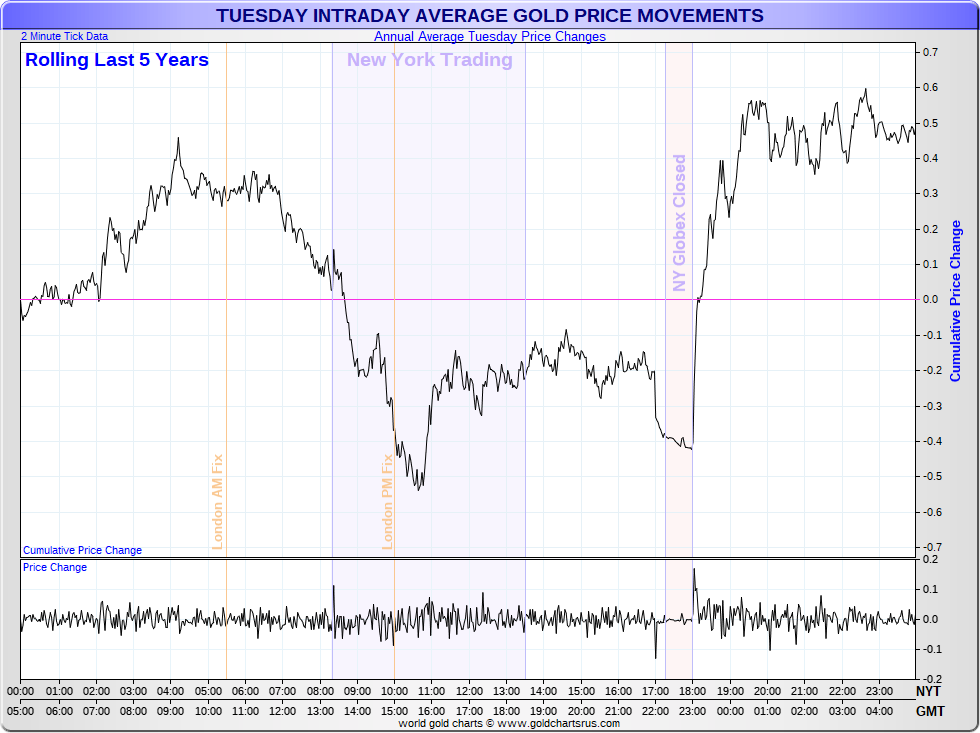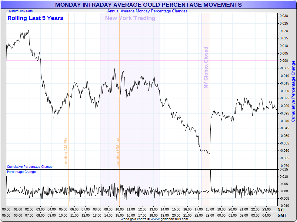 Average Intraday Weekday Gold Moves