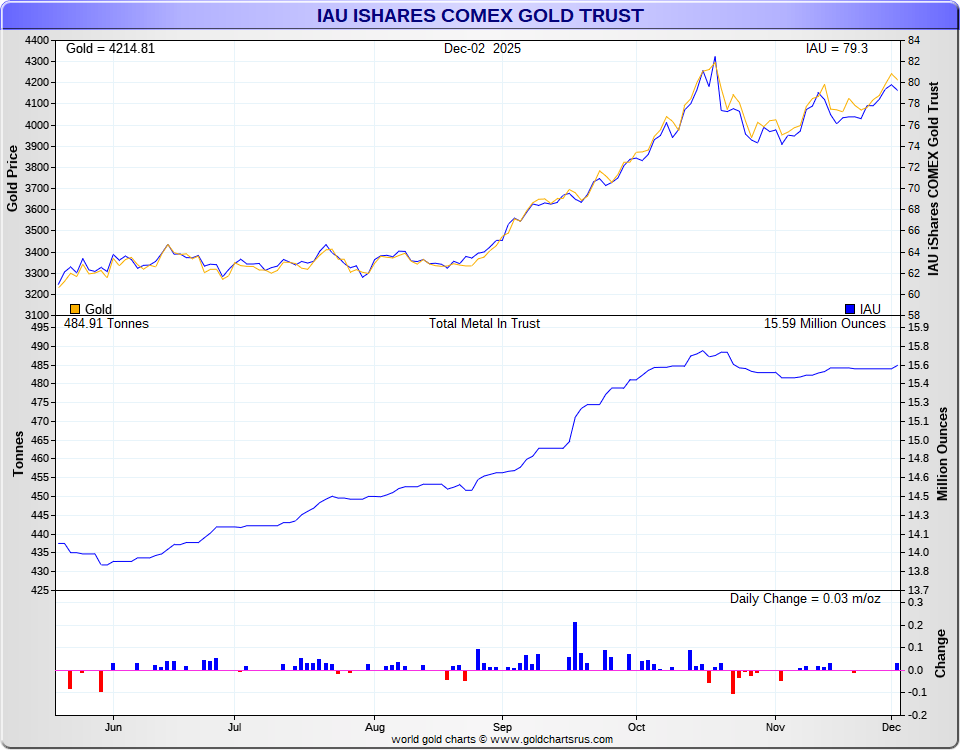 GLD Gold Shares - GLDM Gold MiniShares - IAU Gold Trust - SLV Silver Trust - EFT Total Values